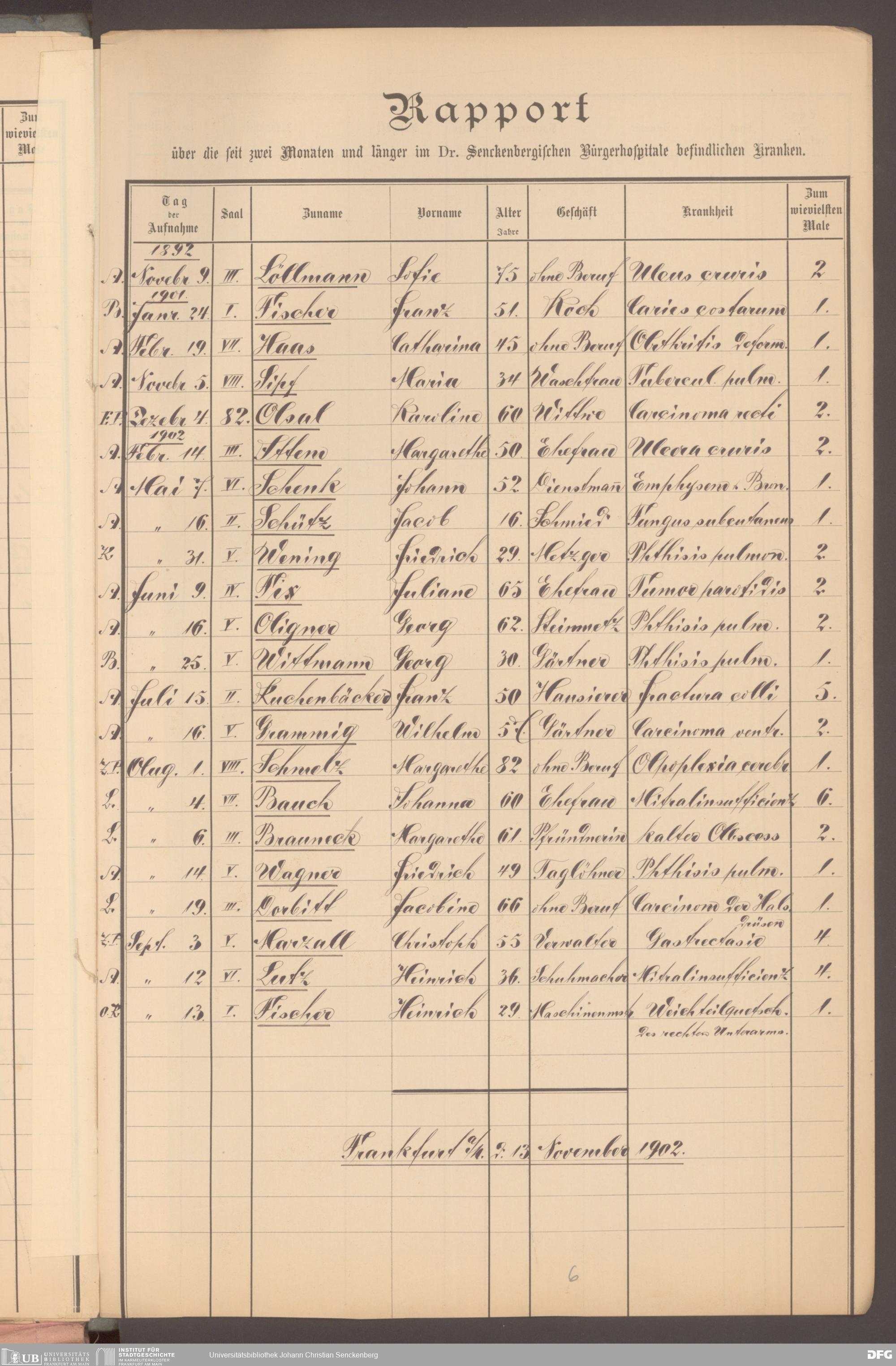V48 Dr. Senckenbergische Stiftung, 620 - Krankenbericht