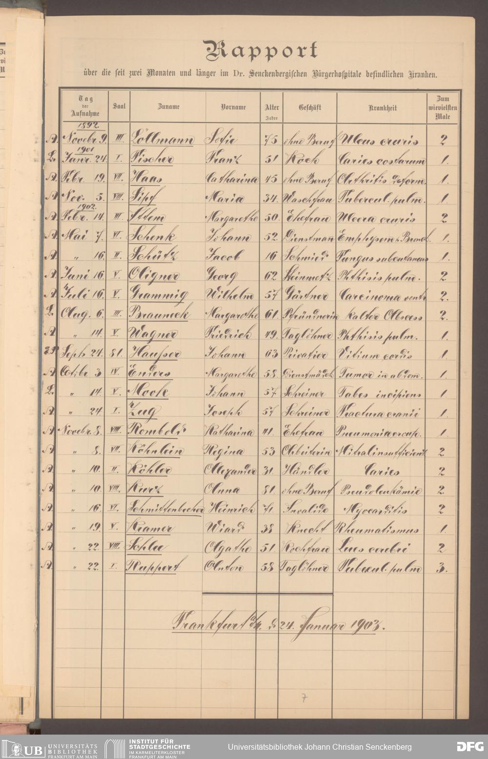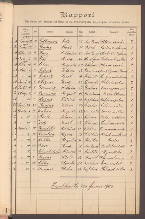 V48 Dr. Senckenbergische Stiftung, 620 - Krankenbericht