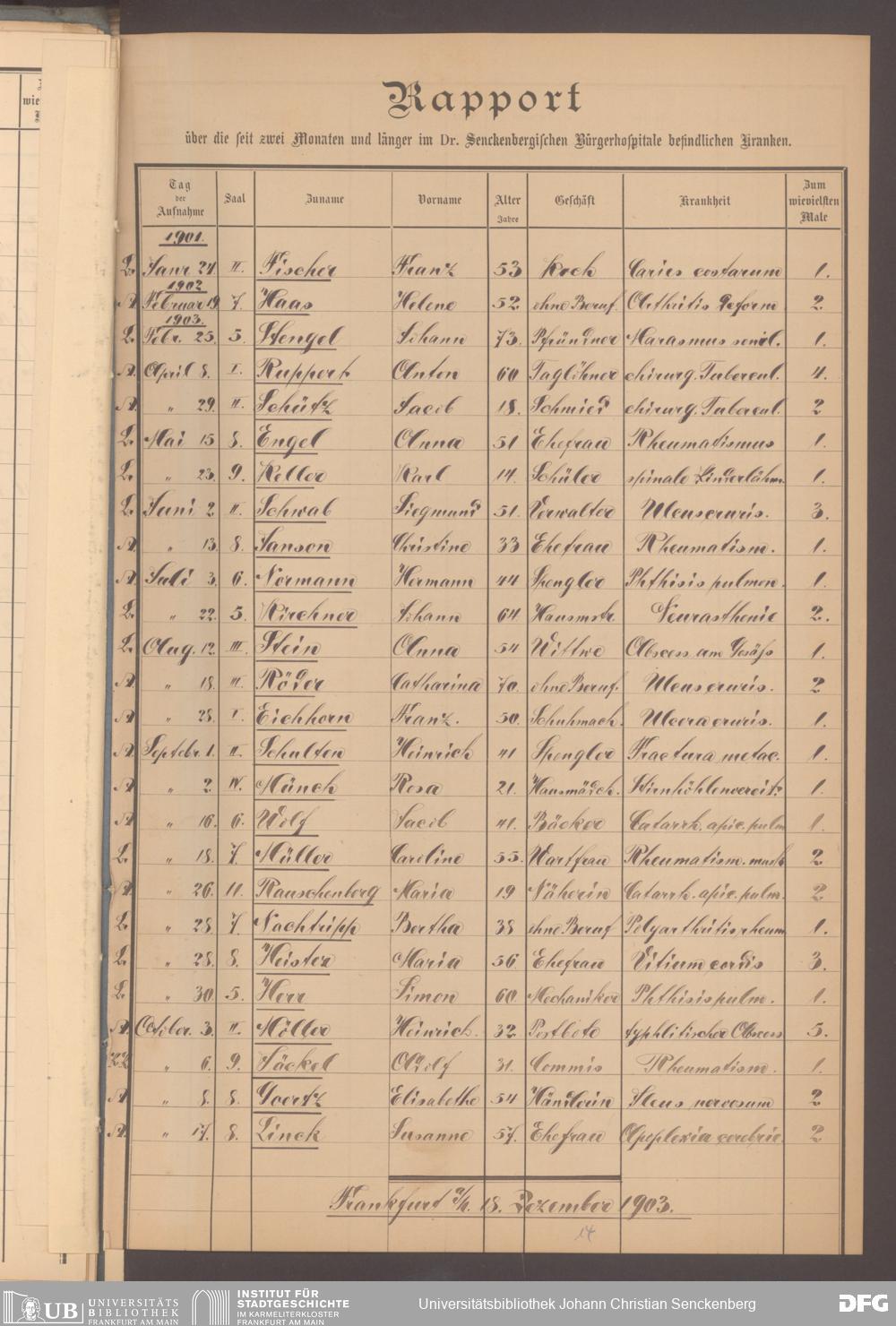 V48 Dr. Senckenbergische Stiftung, 620 - Krankenbericht