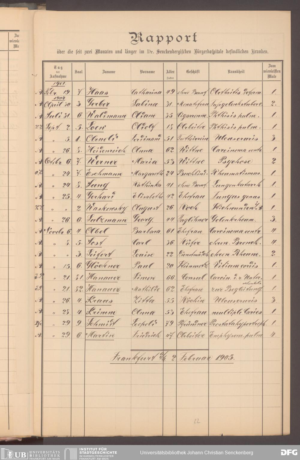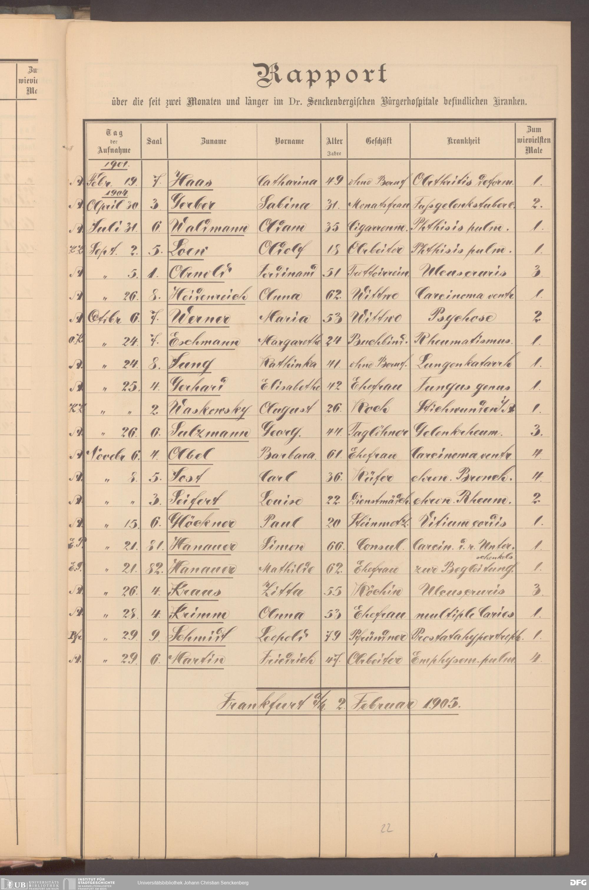 V48 Dr. Senckenbergische Stiftung, 620 - Krankenbericht
