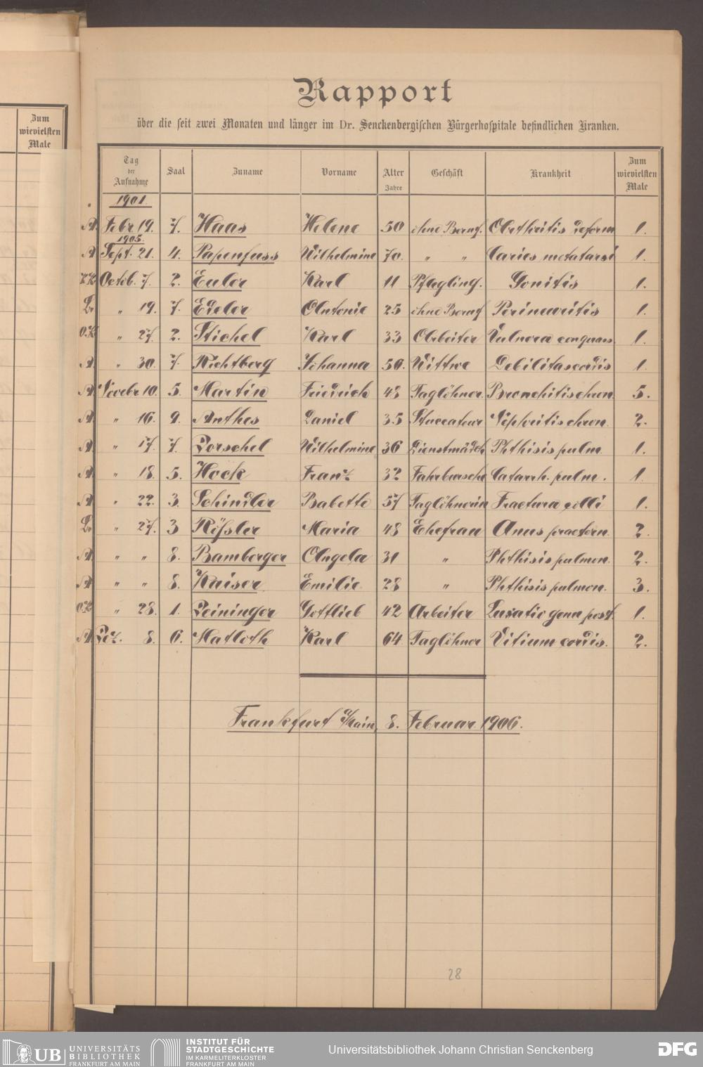 V48 Dr. Senckenbergische Stiftung, 620 - Krankenbericht