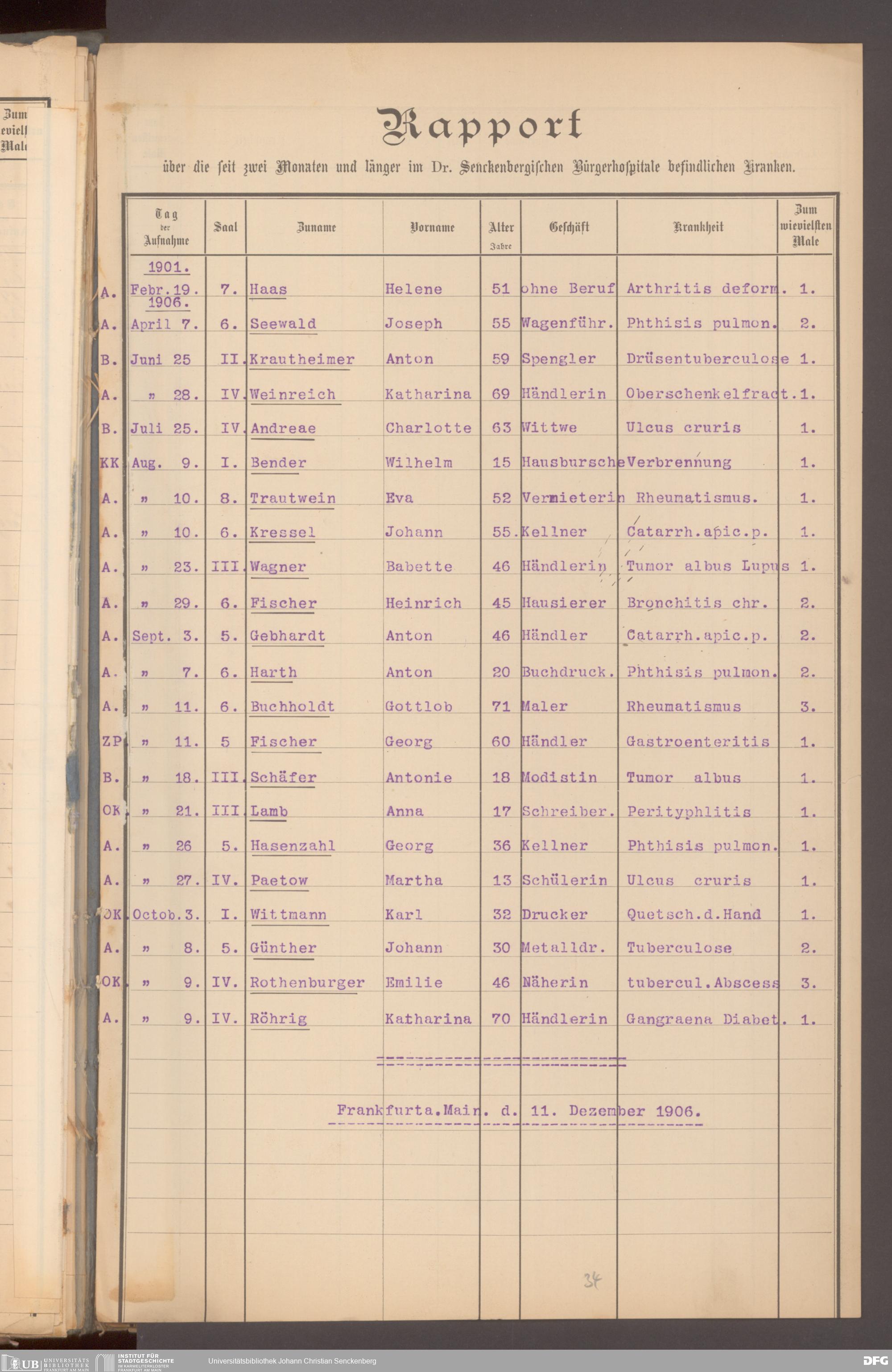 V48 Dr. Senckenbergische Stiftung, 620 - Krankenbericht