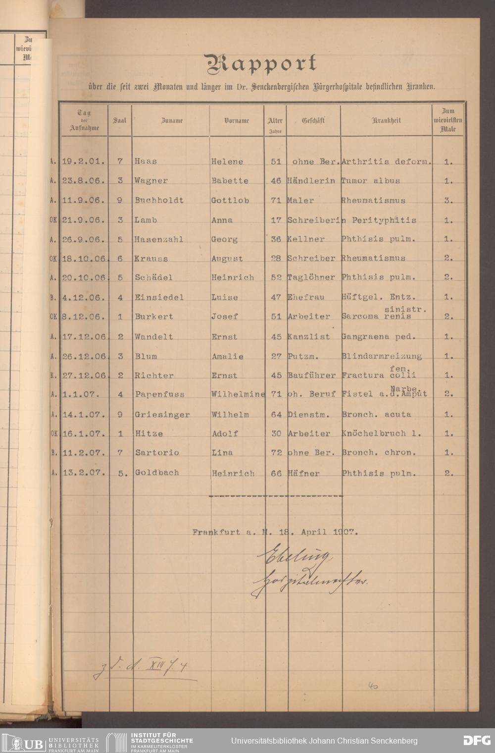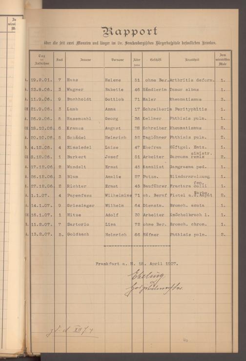 V48 Dr. Senckenbergische Stiftung, 620 - Krankenbericht