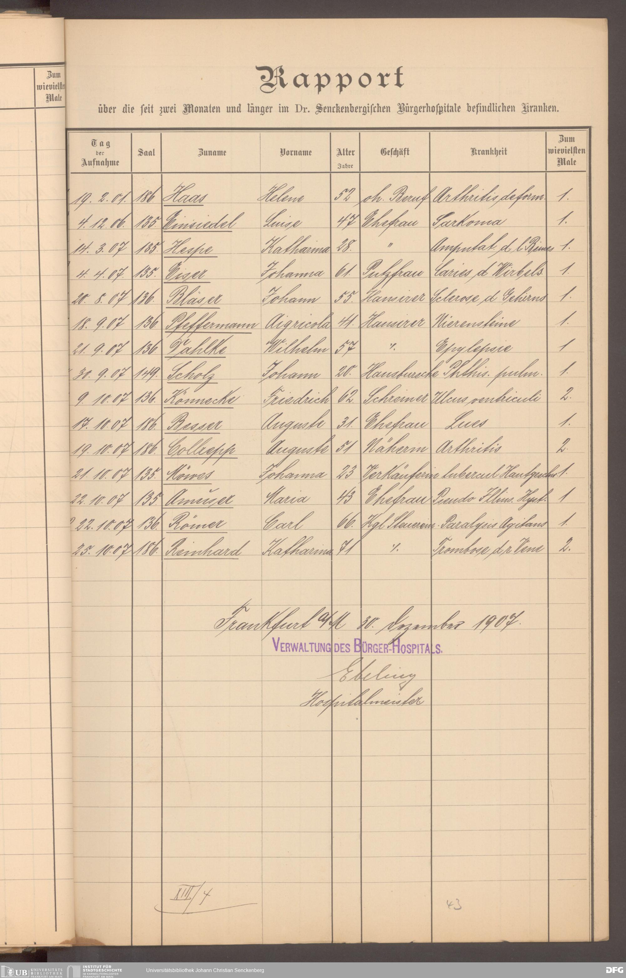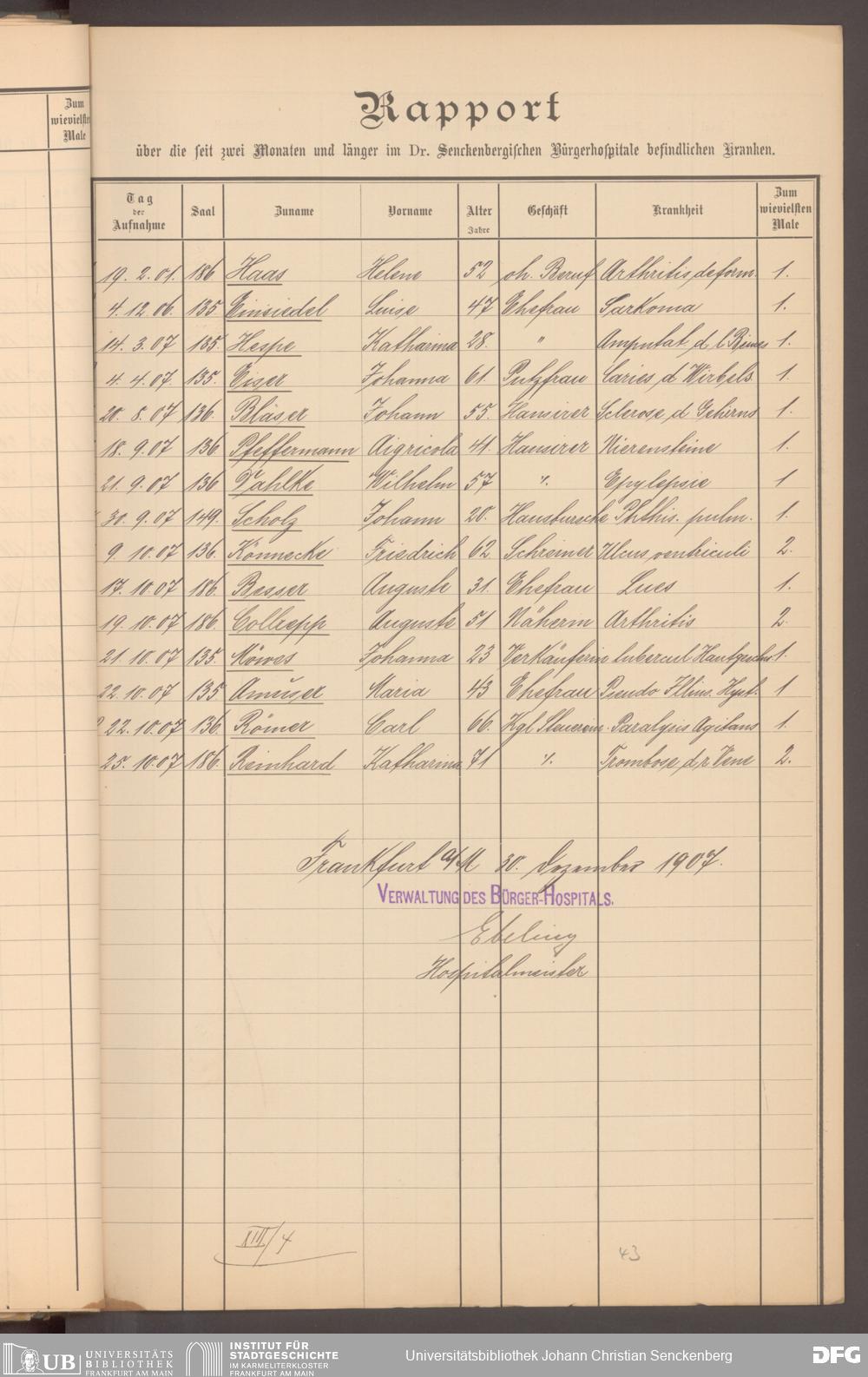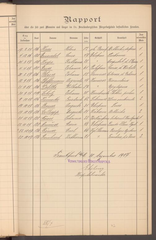 V48 Dr. Senckenbergische Stiftung, 620 - Krankenbericht