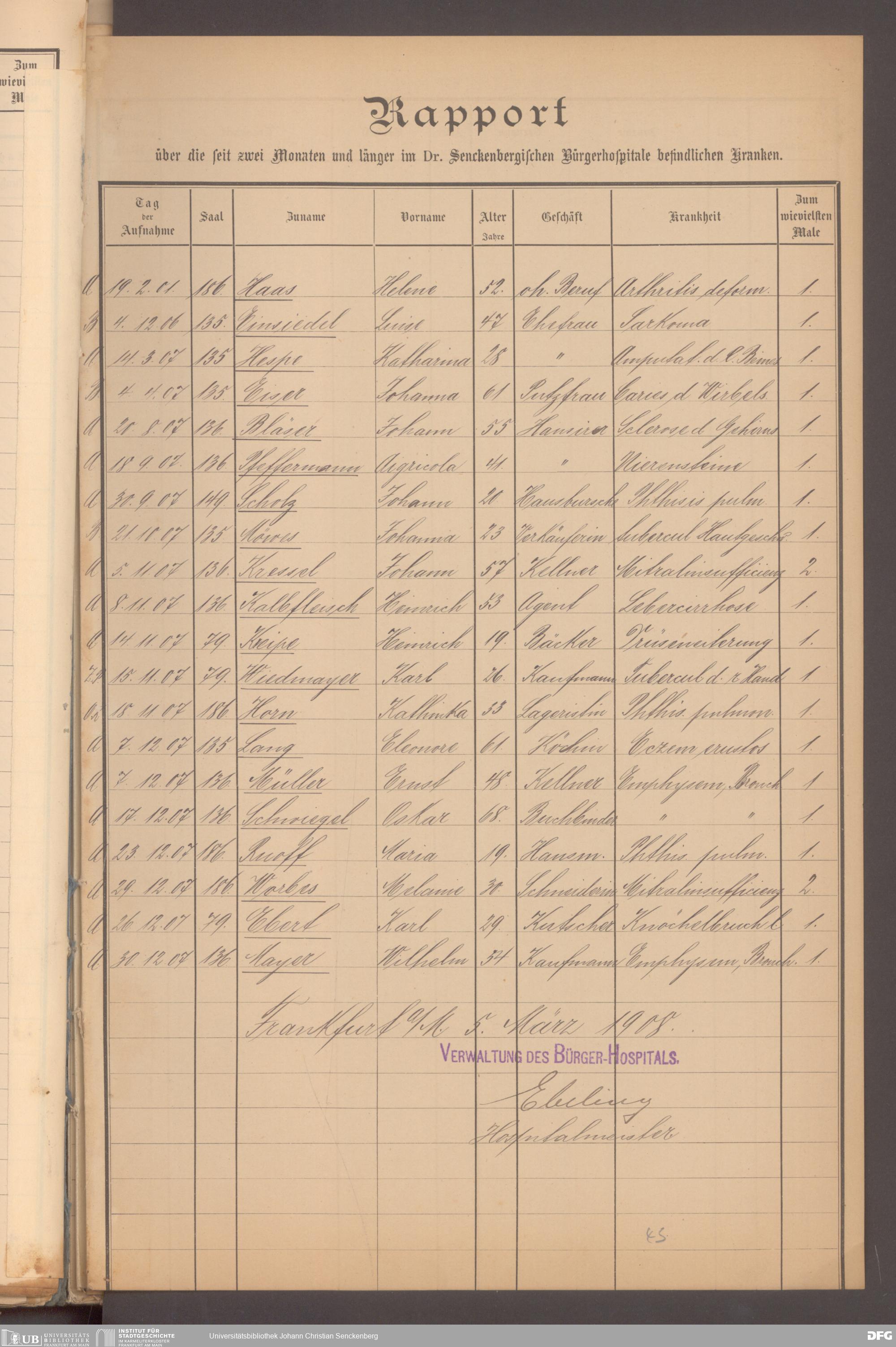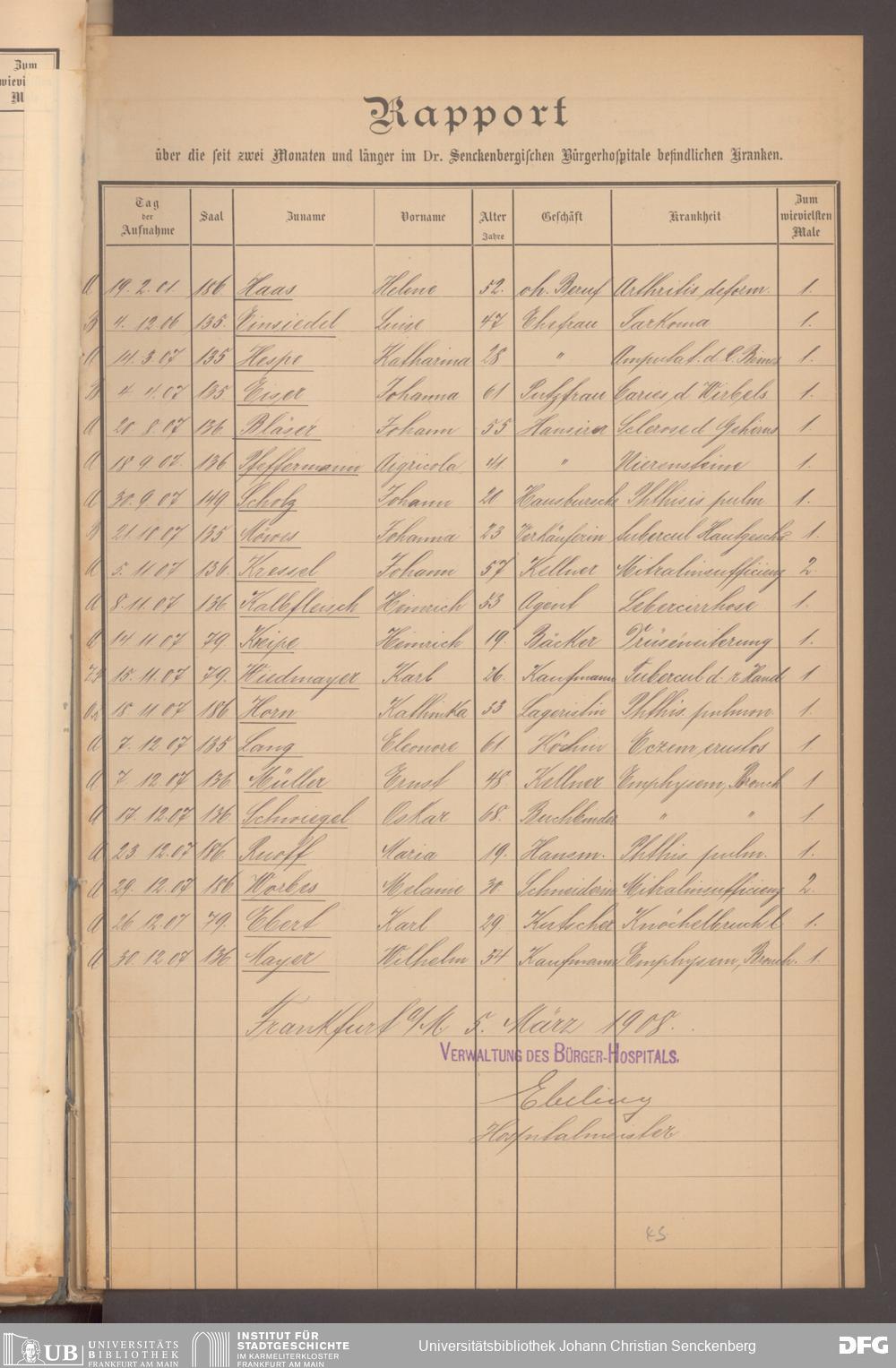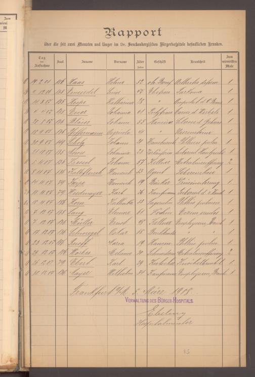 V48 Dr. Senckenbergische Stiftung, 620 - Krankenbericht
