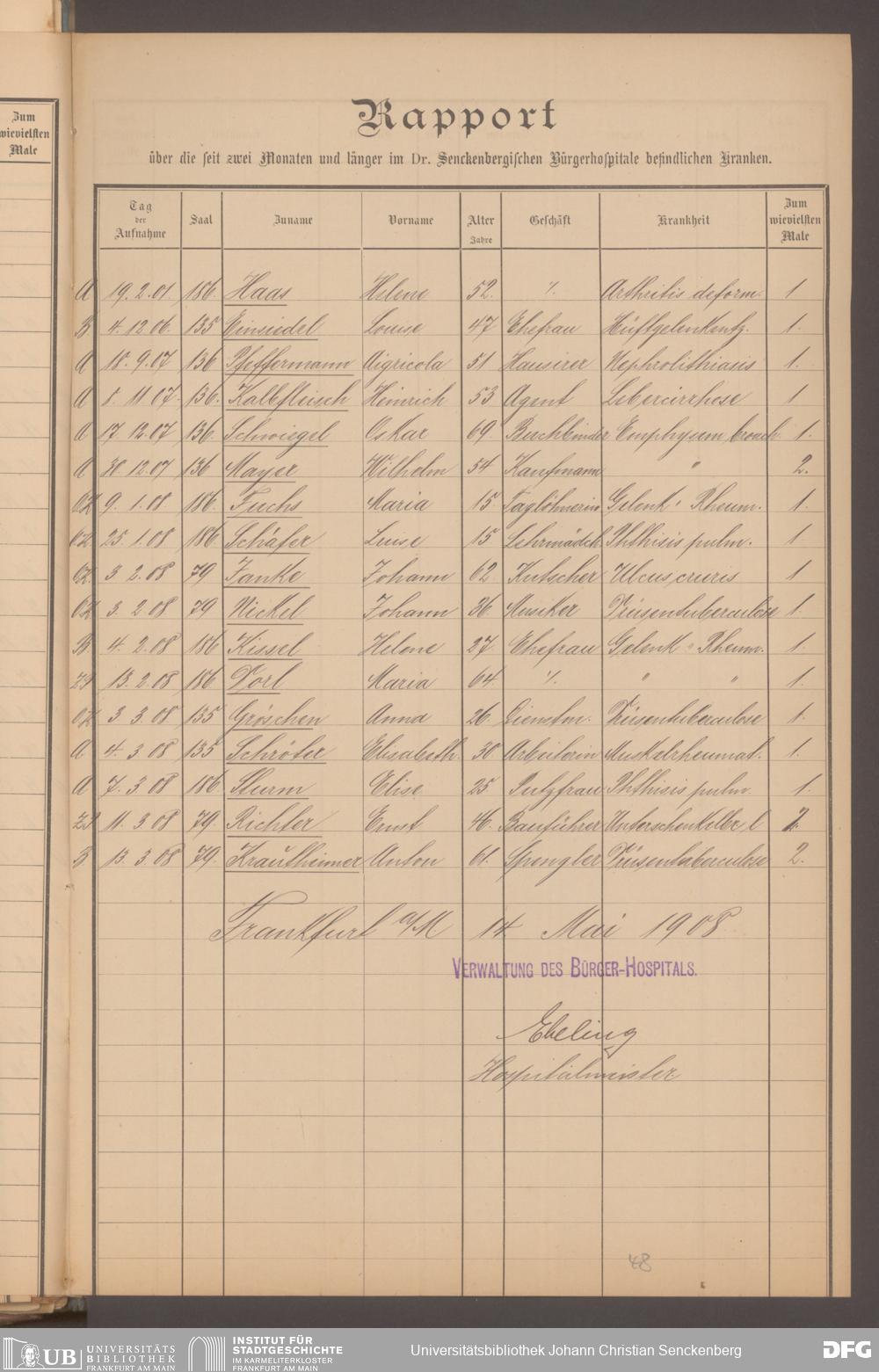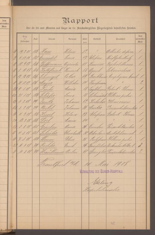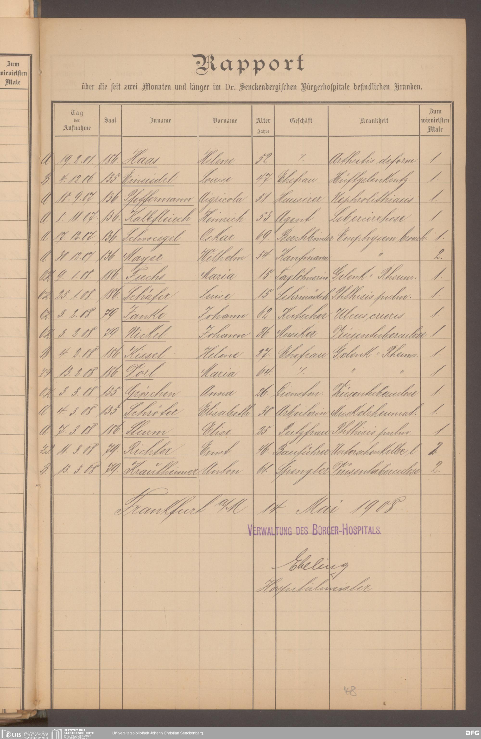 V48 Dr. Senckenbergische Stiftung, 620 - Krankenbericht