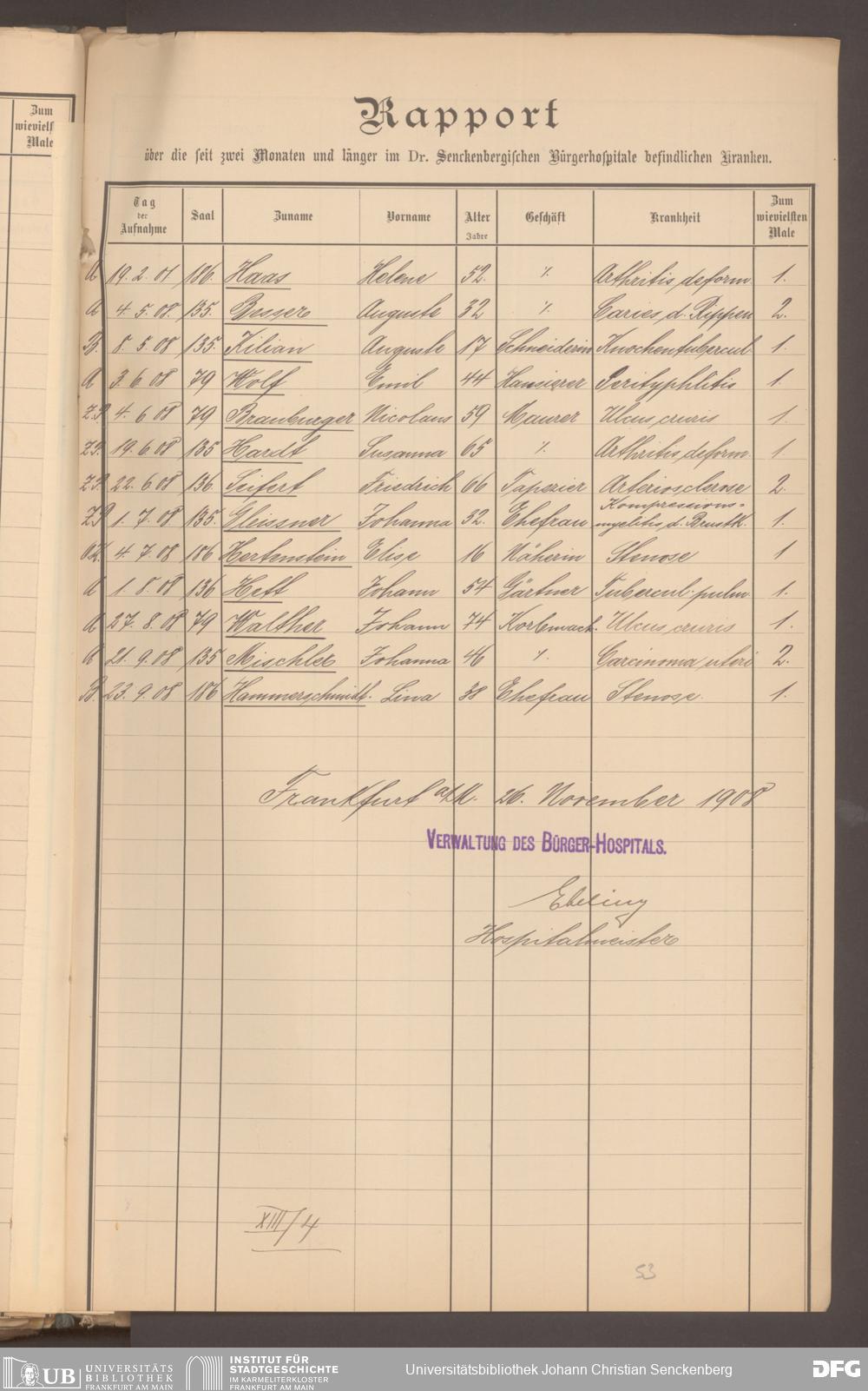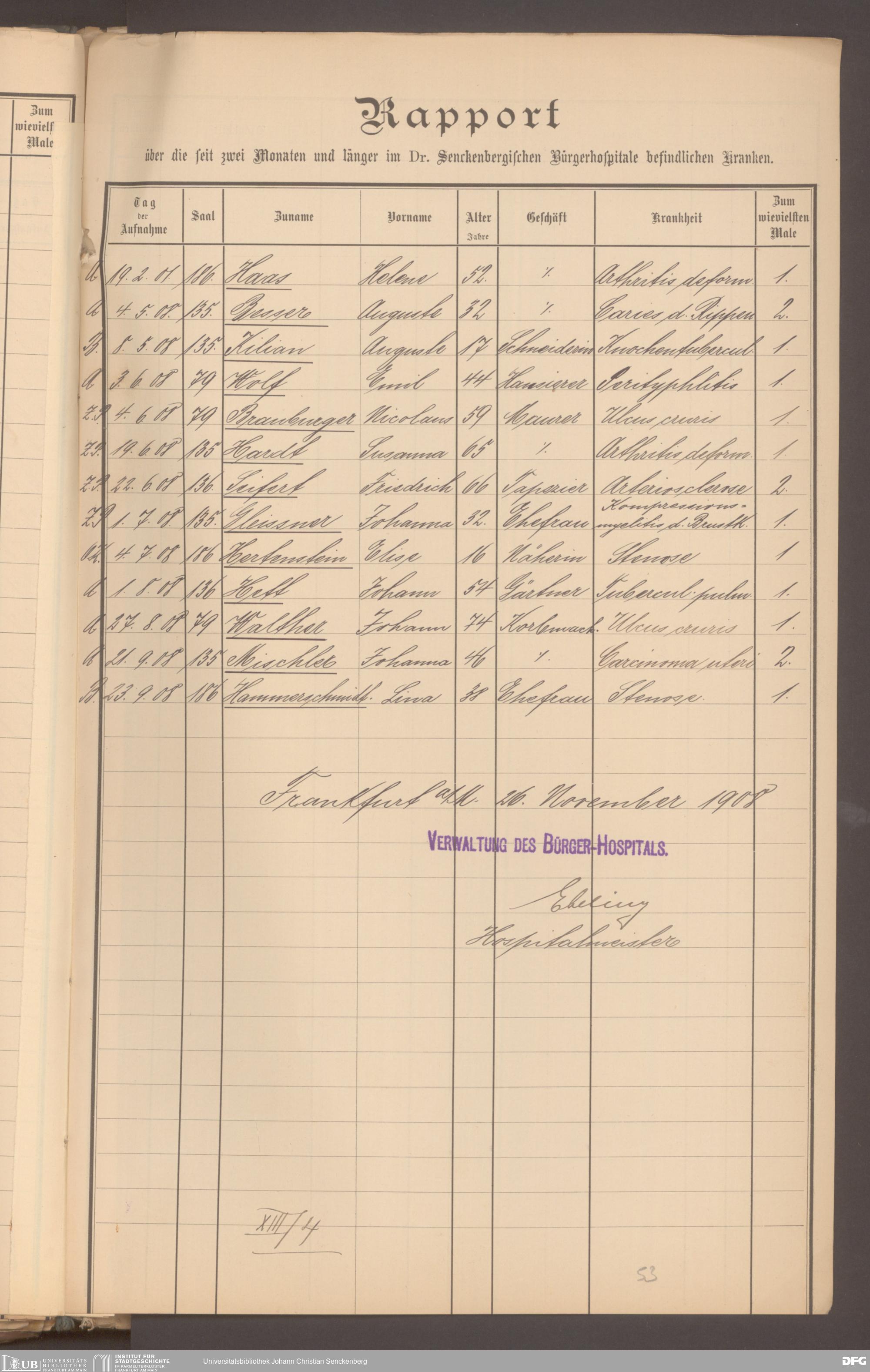 V48 Dr. Senckenbergische Stiftung, 620 - Krankenbericht