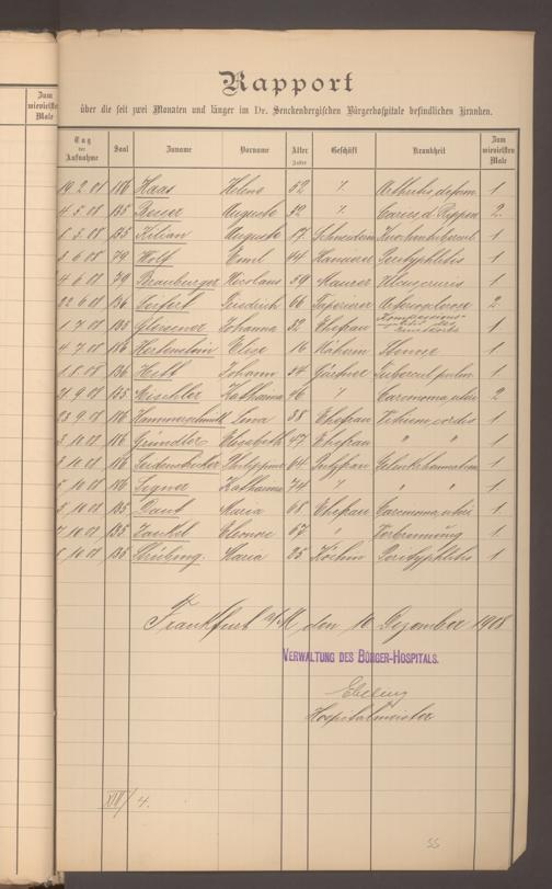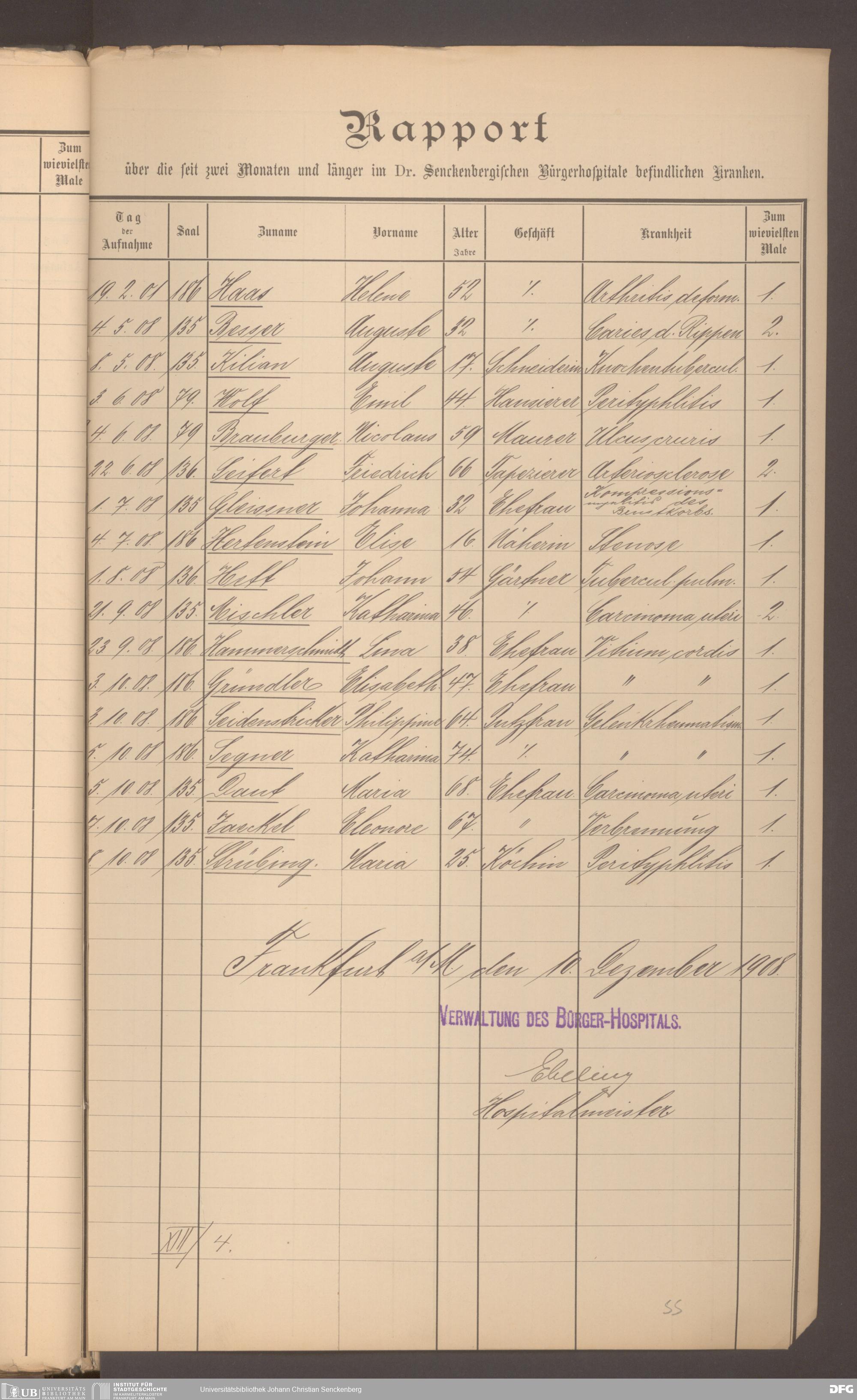 V48 Dr. Senckenbergische Stiftung, 620 - Krankenbericht