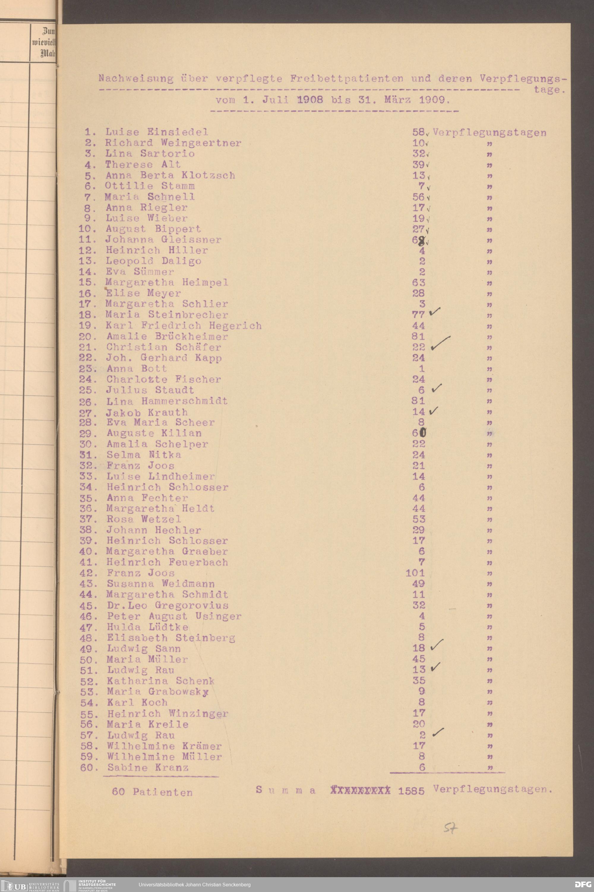 V48 Dr. Senckenbergische Stiftung, 620 - Krankenbericht