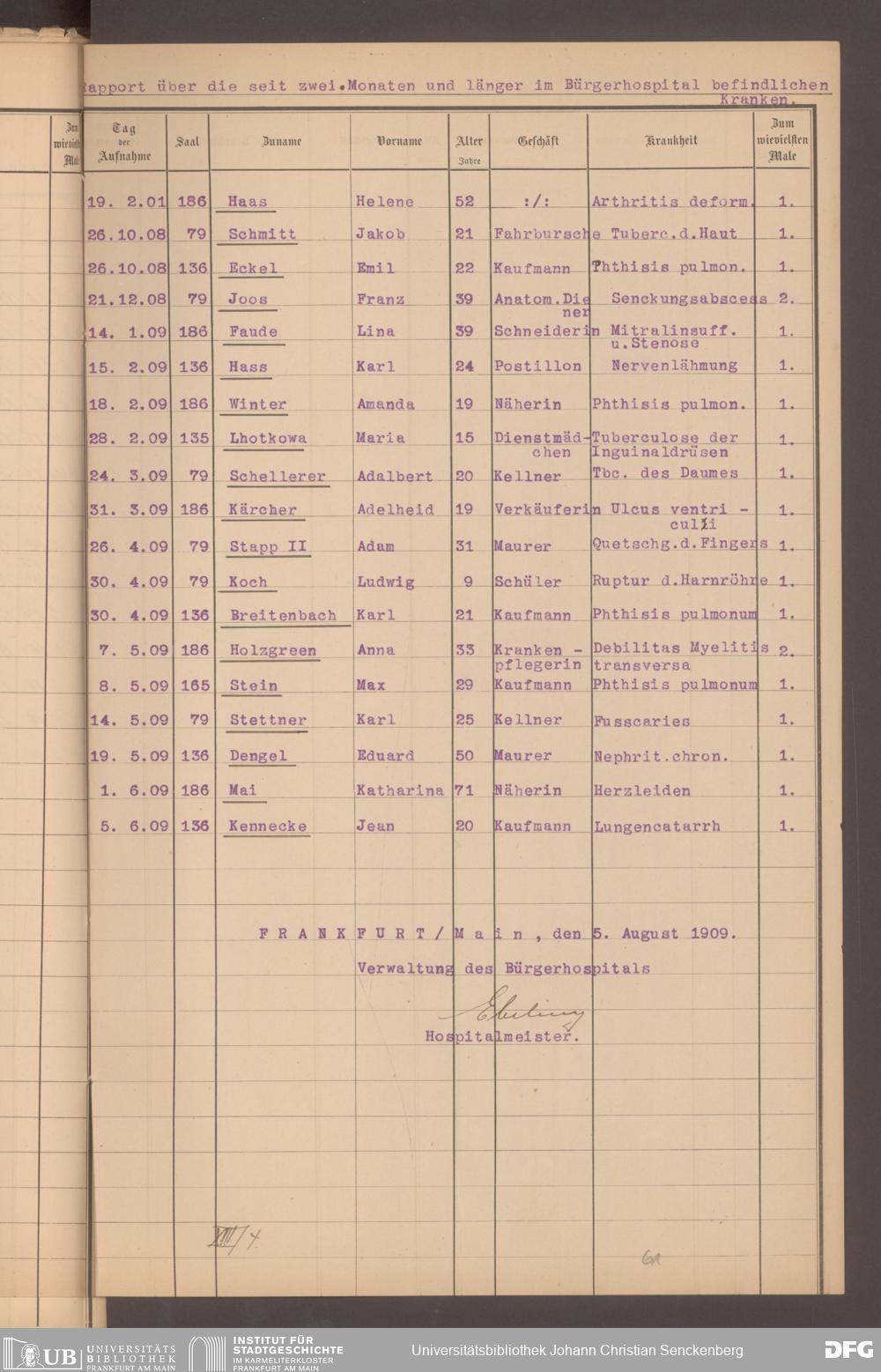 V48 Dr. Senckenbergische Stiftung, 620 - Krankenbericht