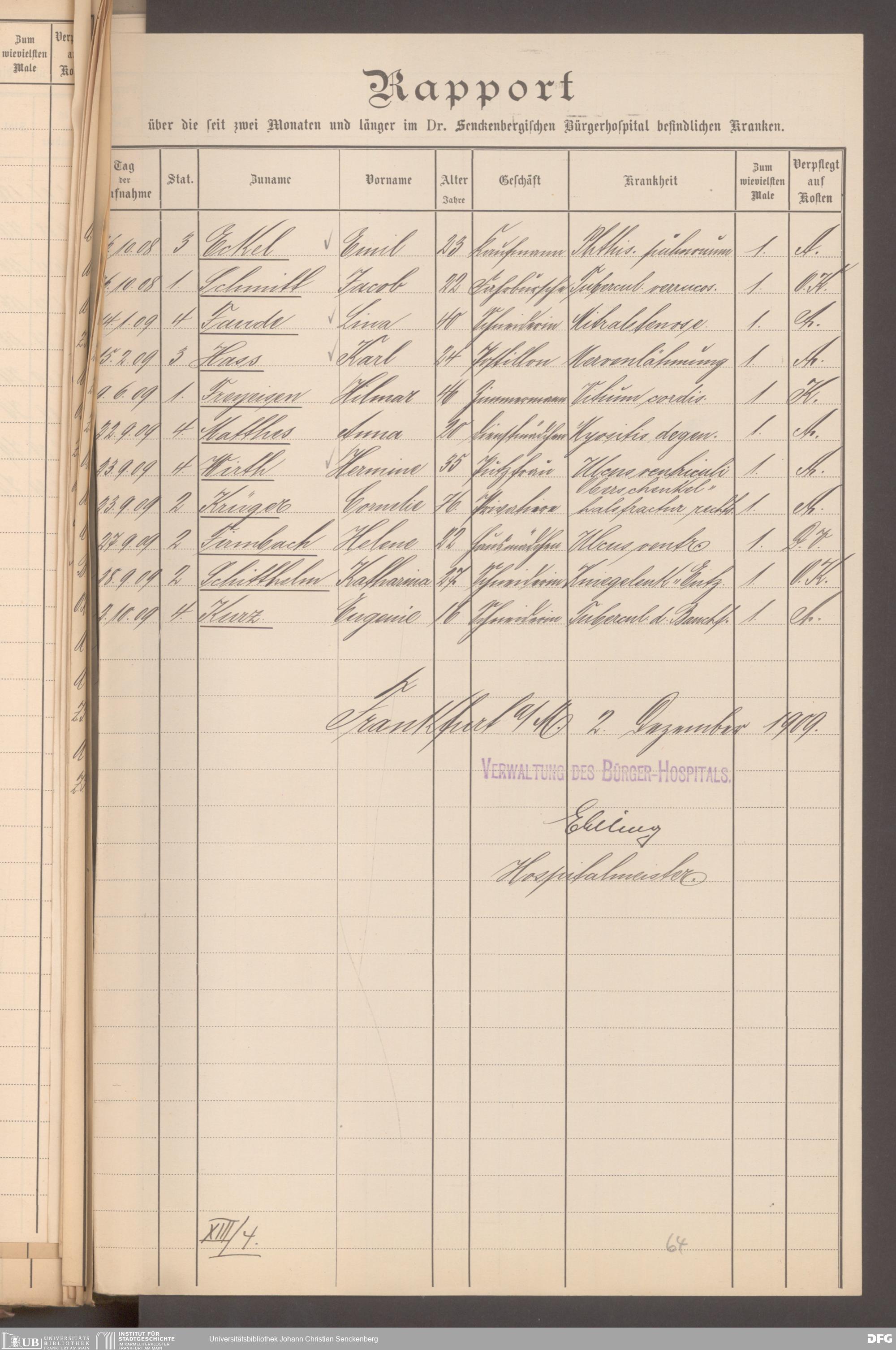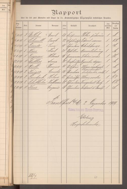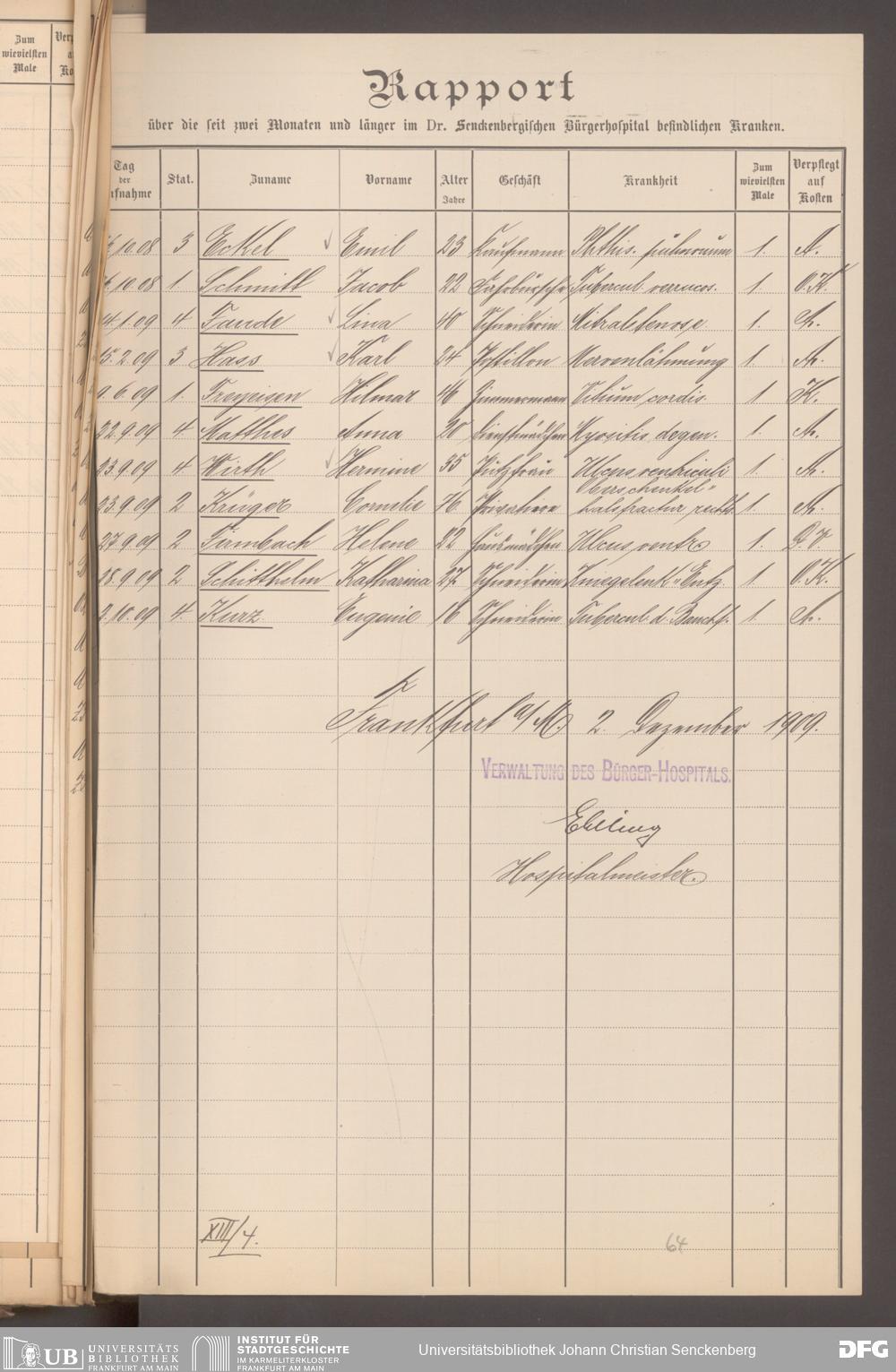 V48 Dr. Senckenbergische Stiftung, 620 - Krankenbericht