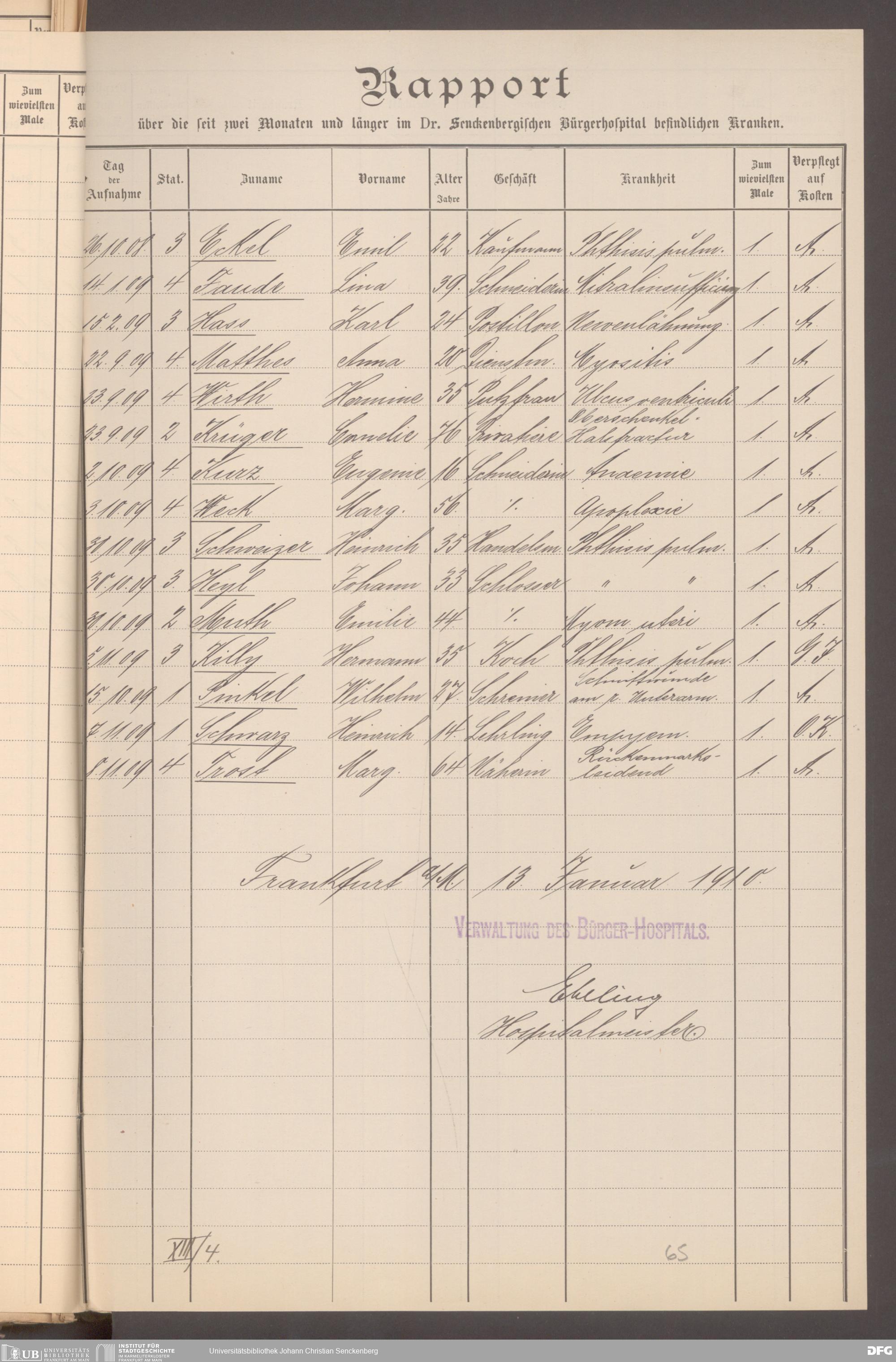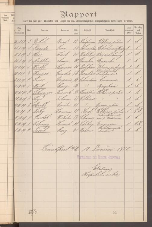 V48 Dr. Senckenbergische Stiftung, 620 - Krankenbericht