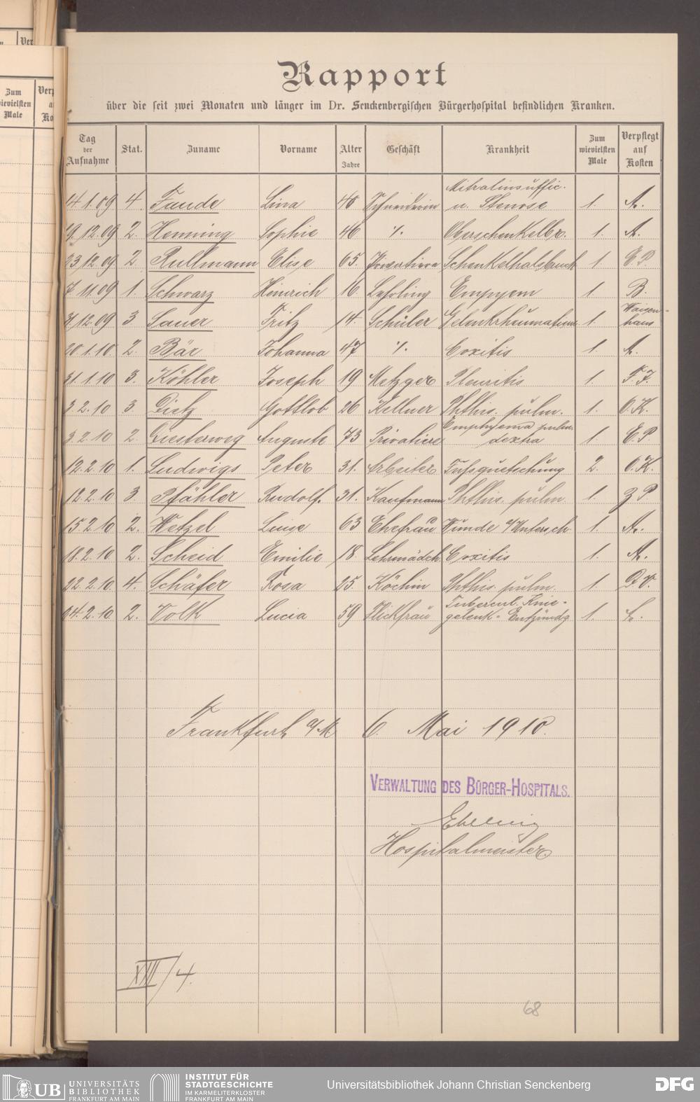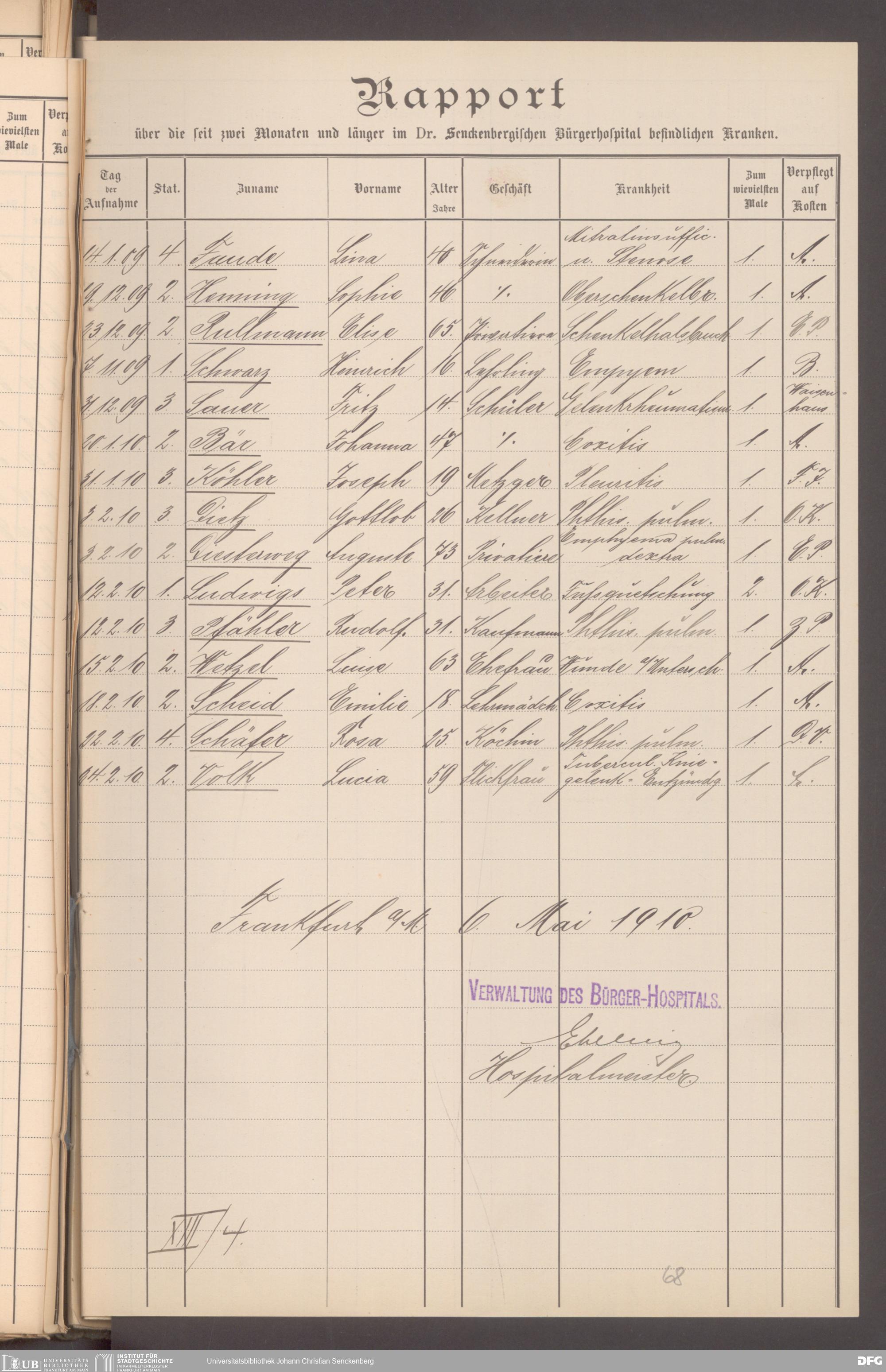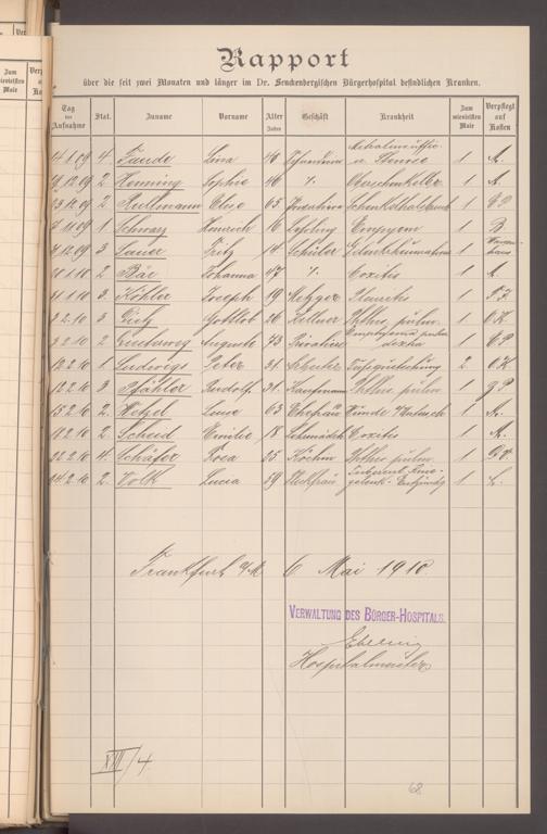 V48 Dr. Senckenbergische Stiftung, 620 - Krankenbericht