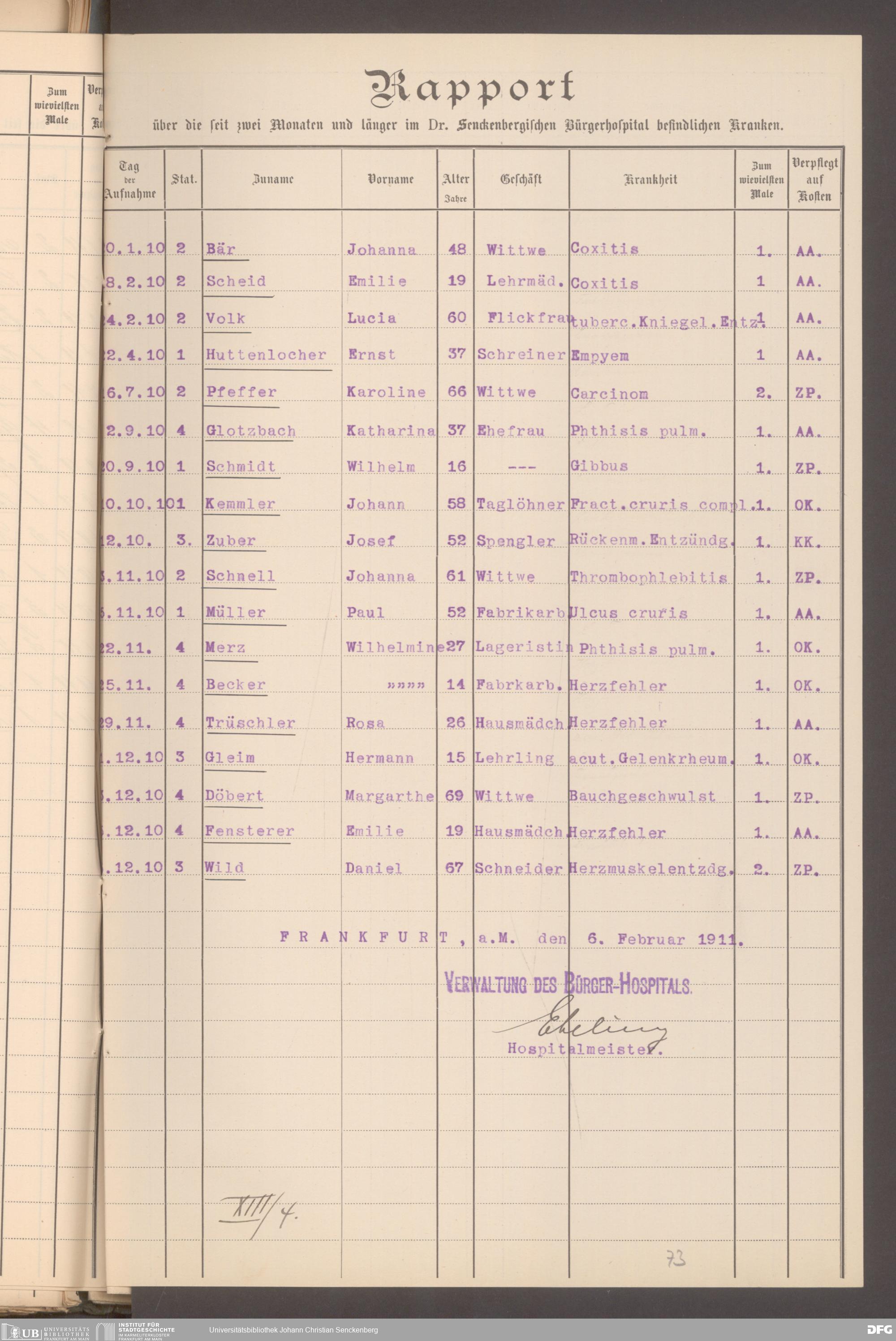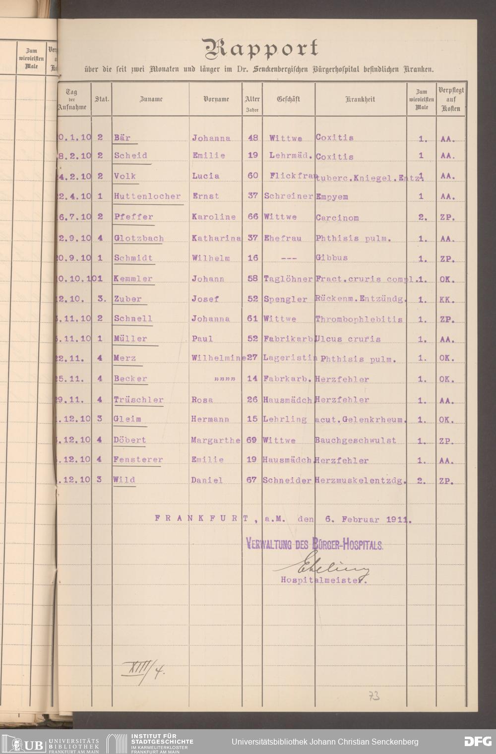 V48 Dr. Senckenbergische Stiftung, 620 - Krankenbericht