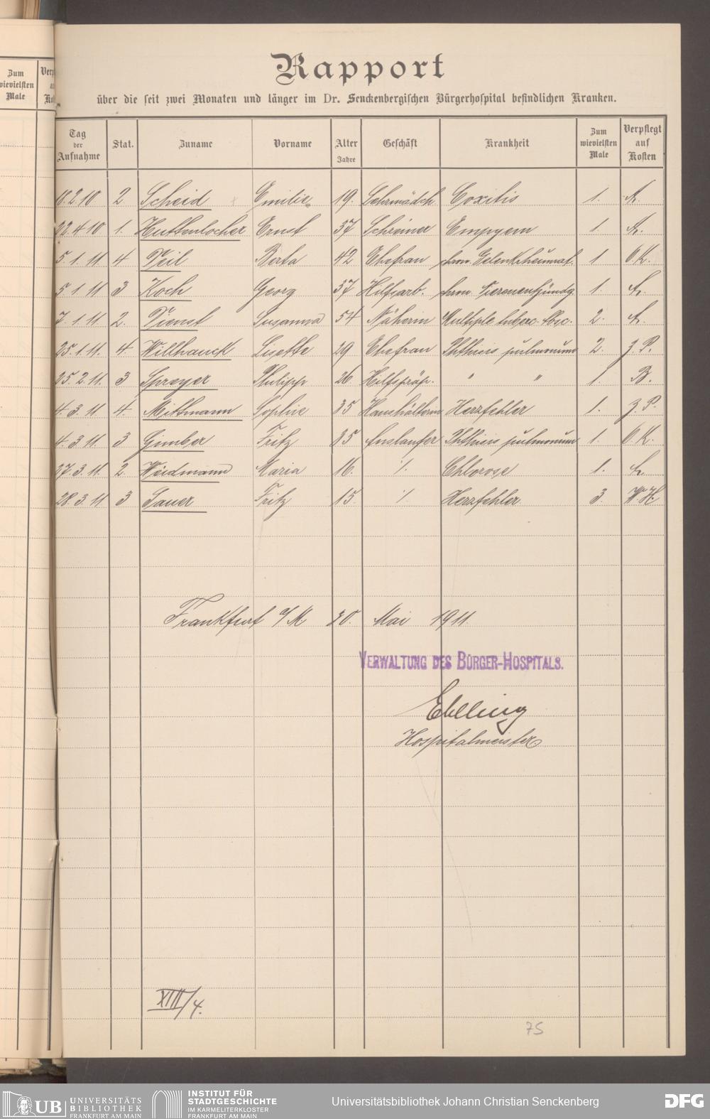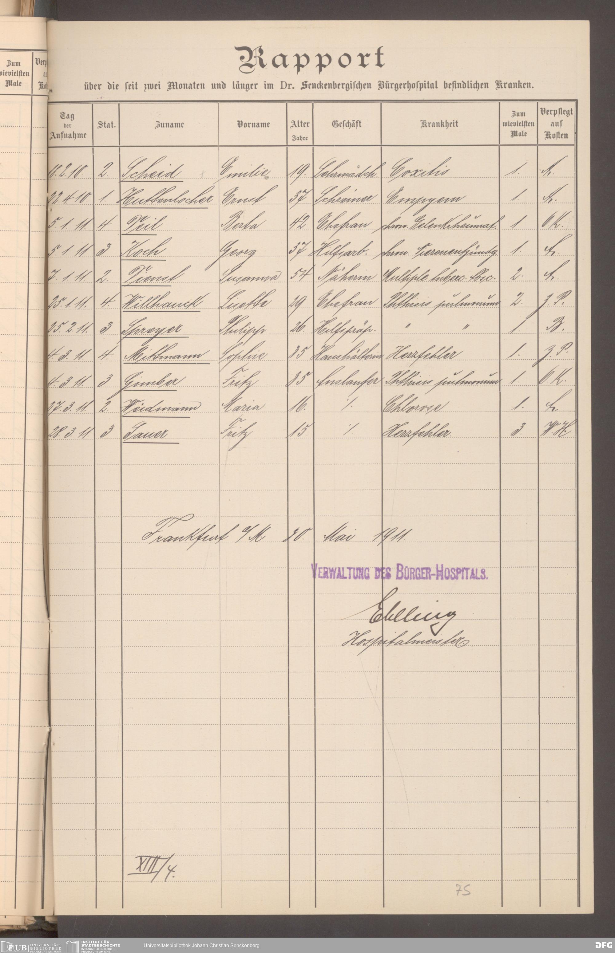 V48 Dr. Senckenbergische Stiftung, 620 - Krankenbericht