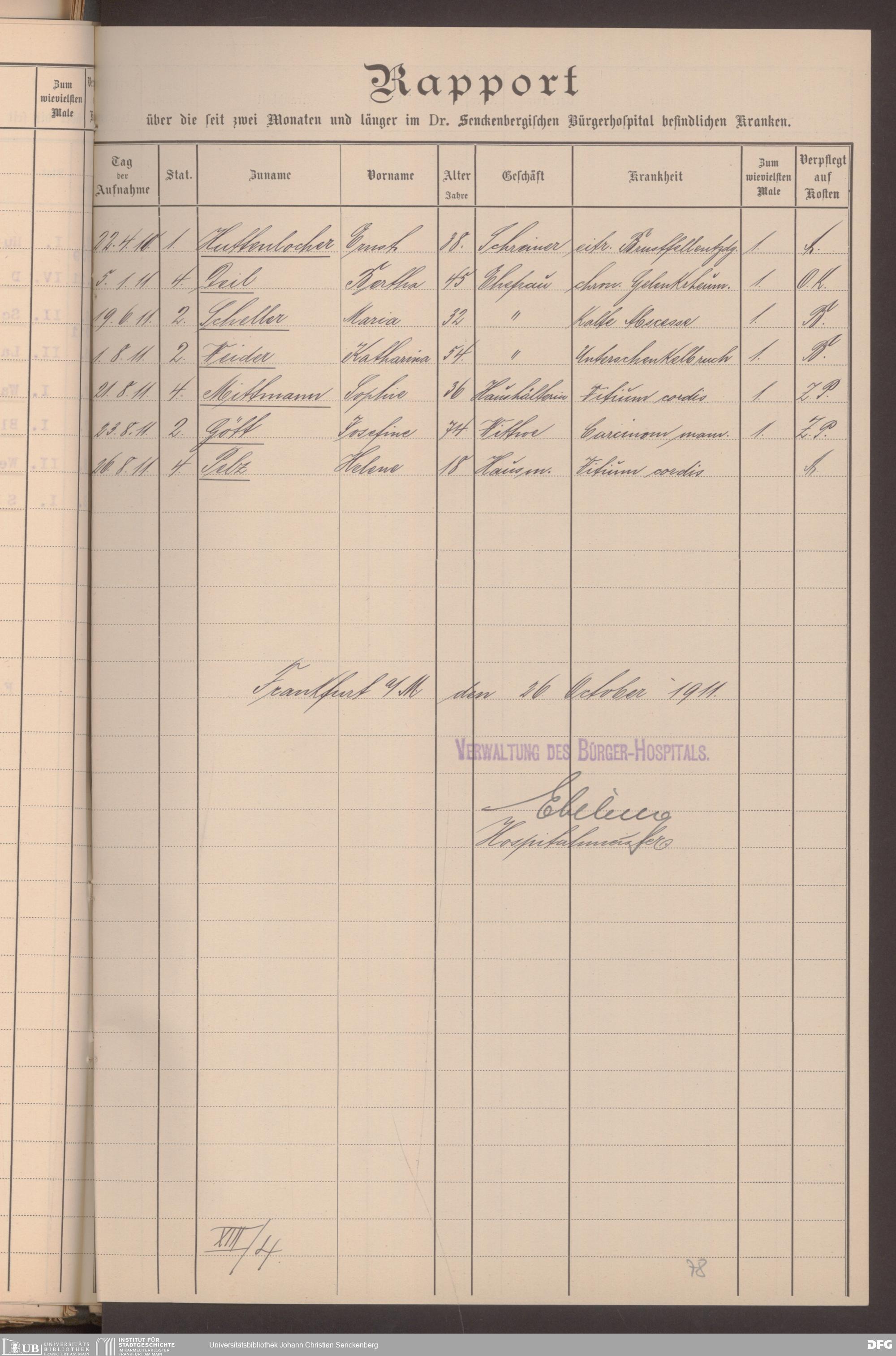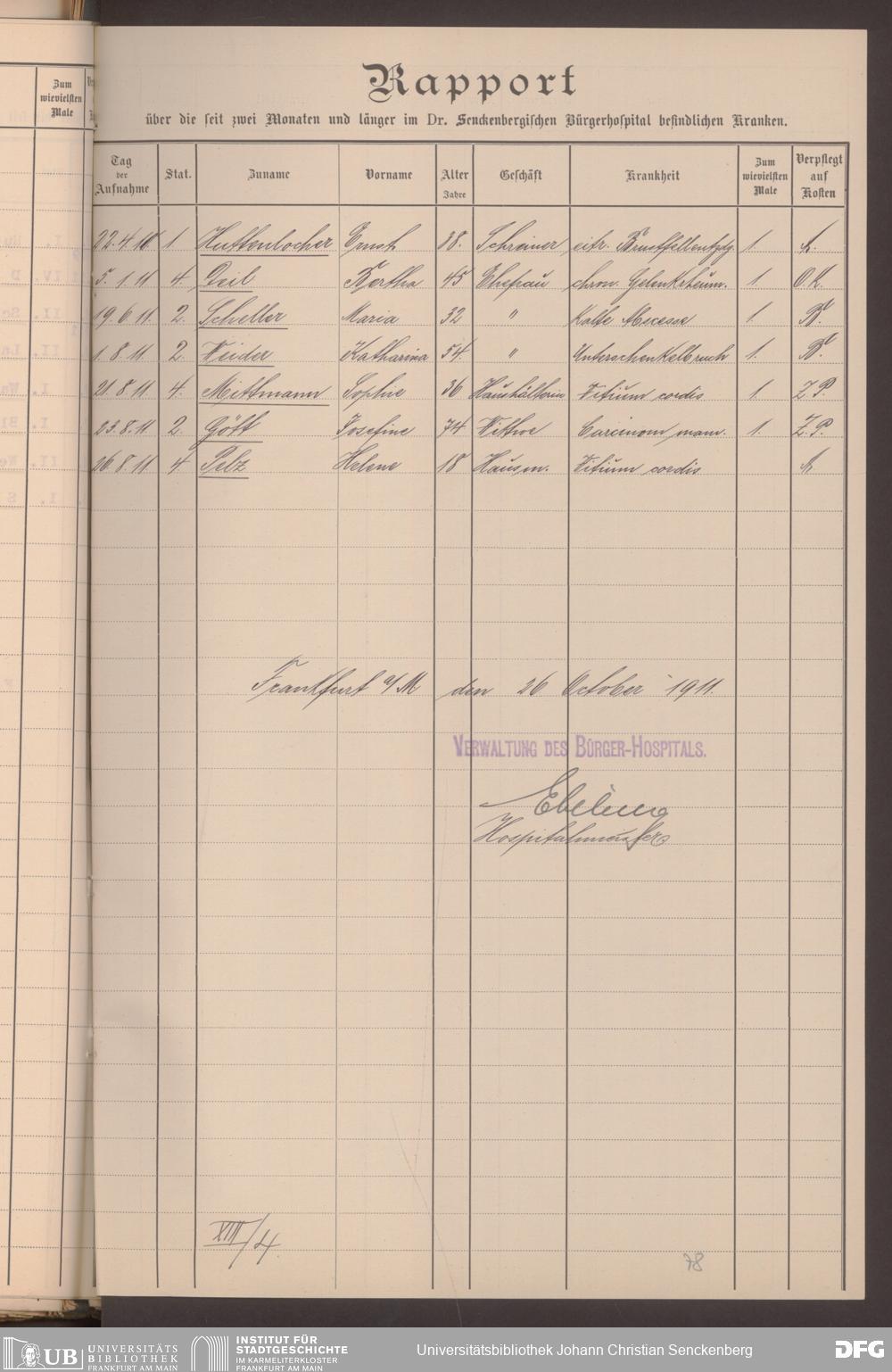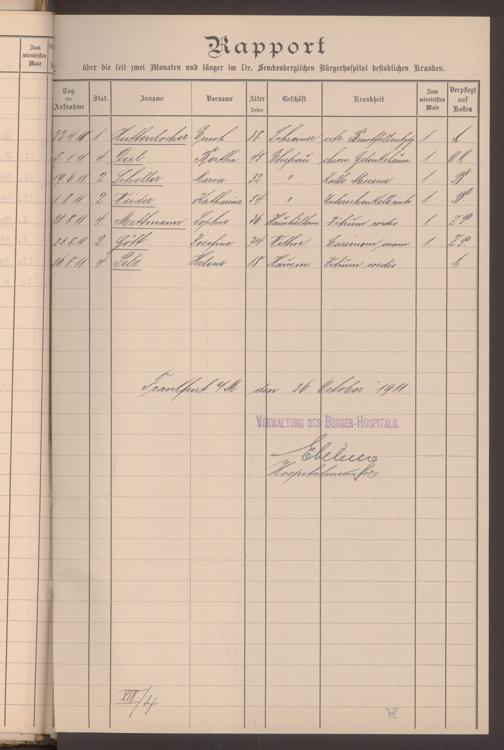 V48 Dr. Senckenbergische Stiftung, 620 - Krankenbericht