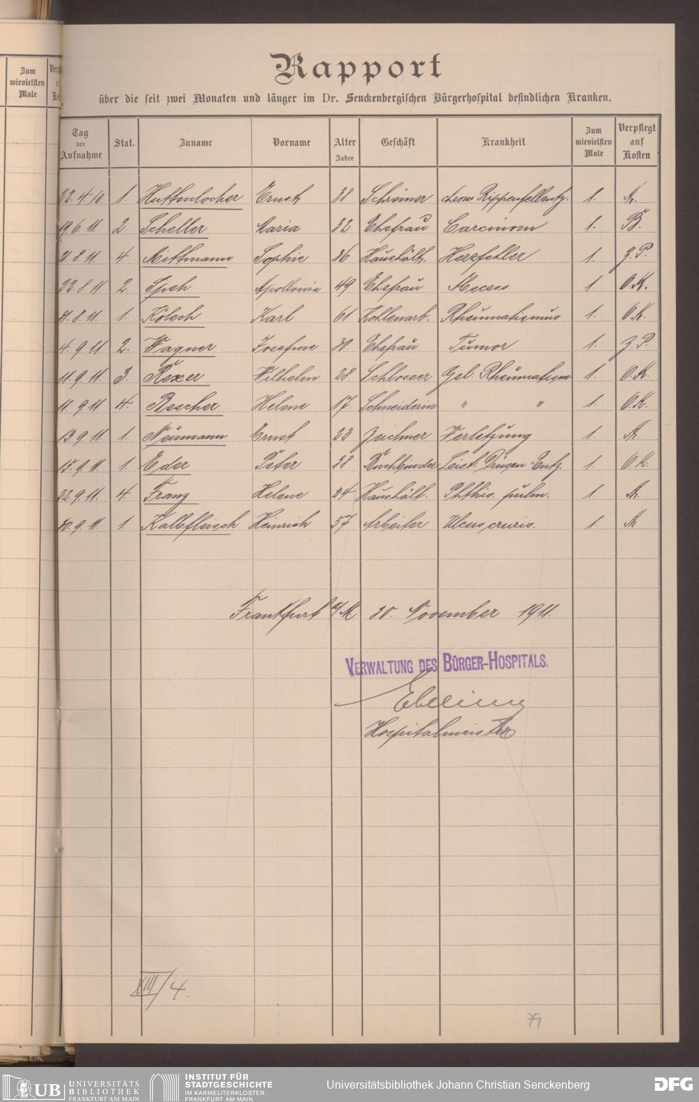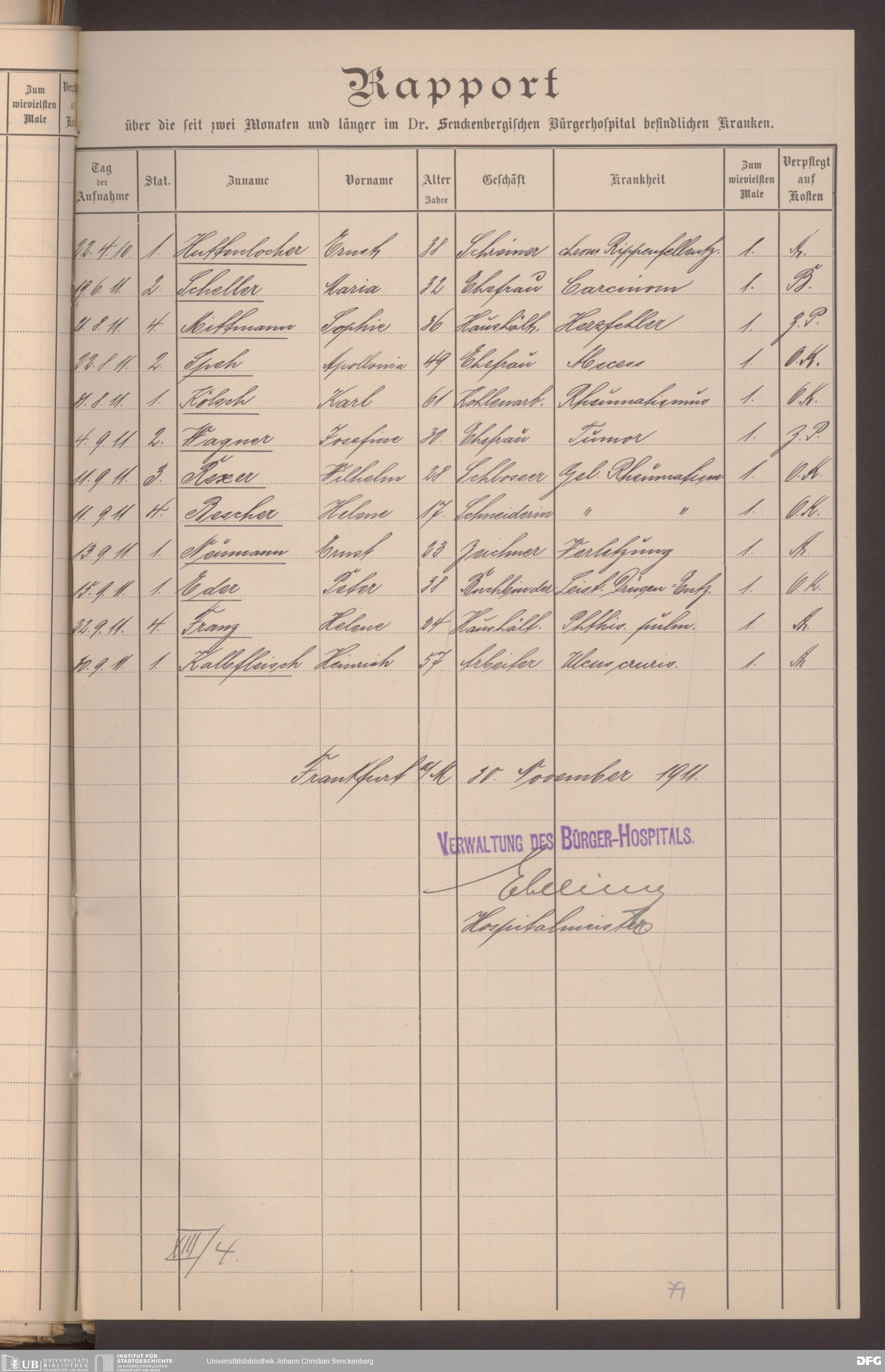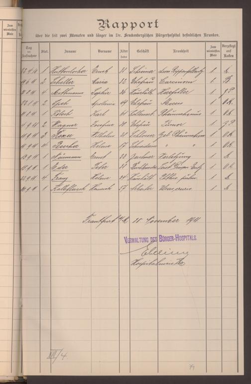 V48 Dr. Senckenbergische Stiftung, 620 - Krankenbericht
