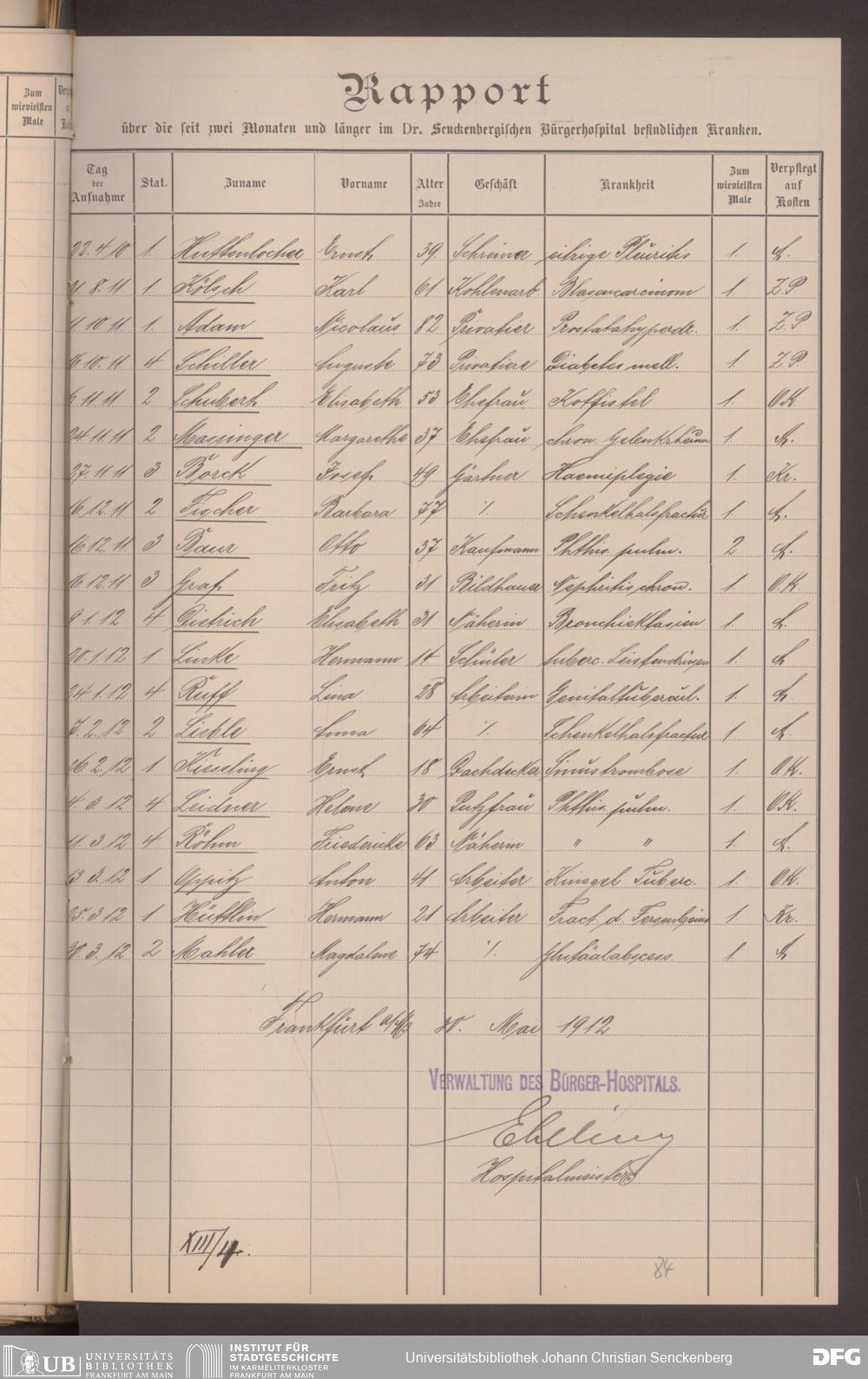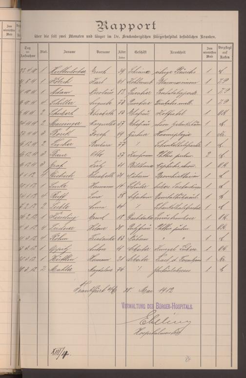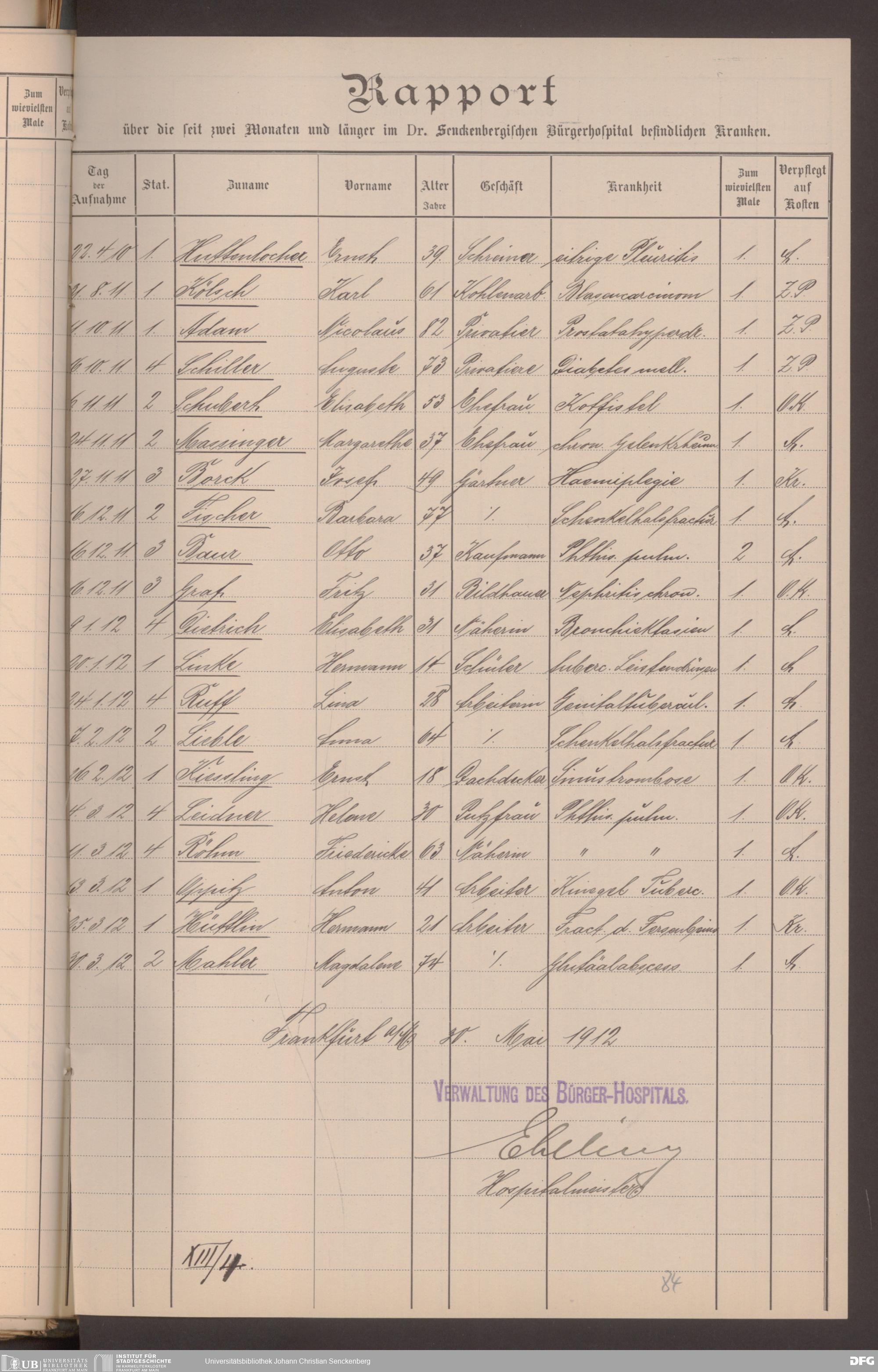 V48 Dr. Senckenbergische Stiftung, 620 - Krankenbericht
