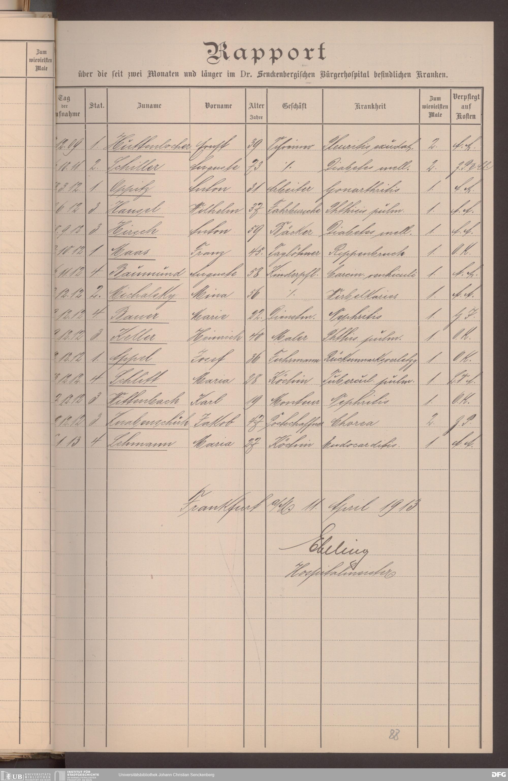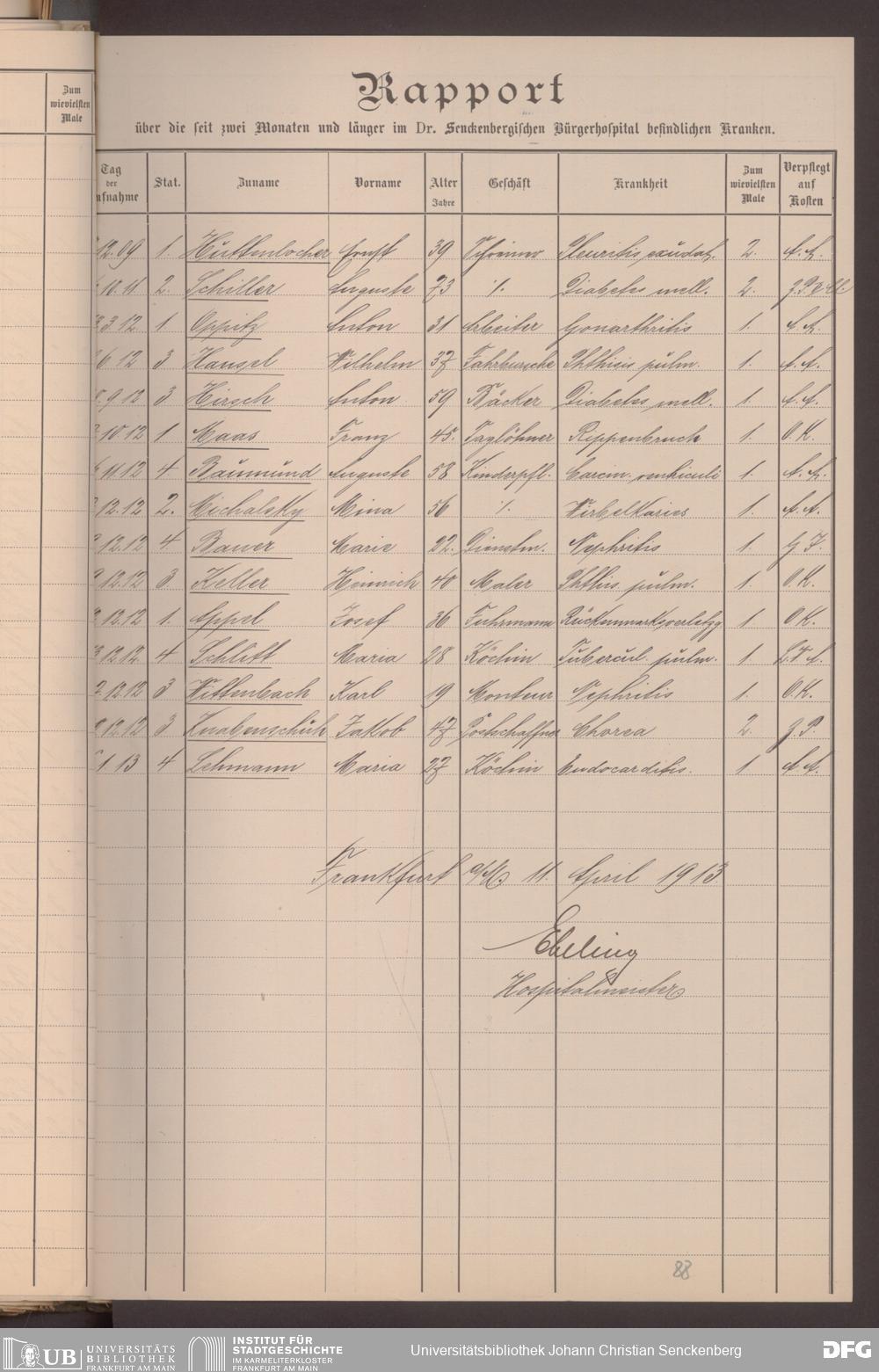 V48 Dr. Senckenbergische Stiftung, 620 - Krankenbericht