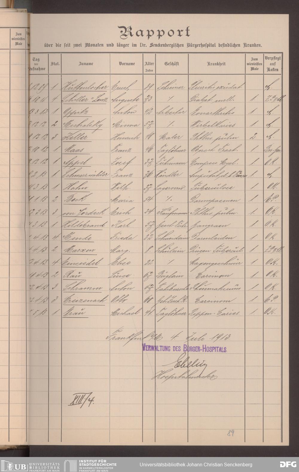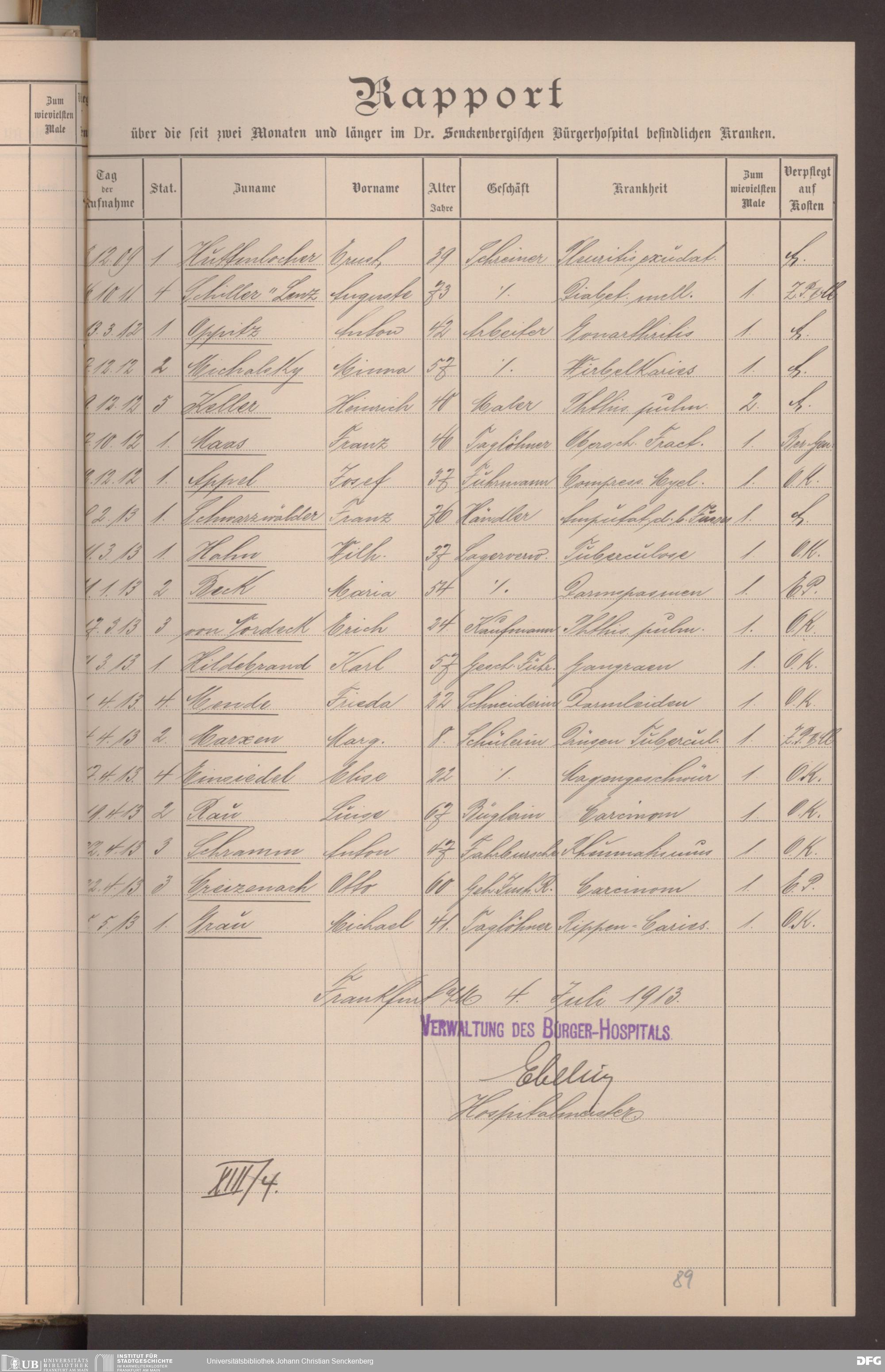 V48 Dr. Senckenbergische Stiftung, 620 - Krankenbericht