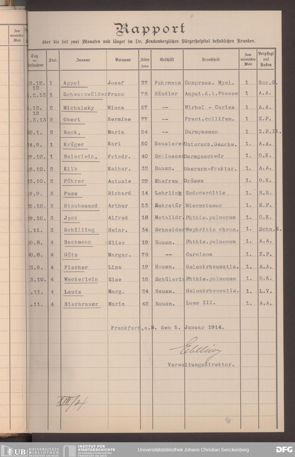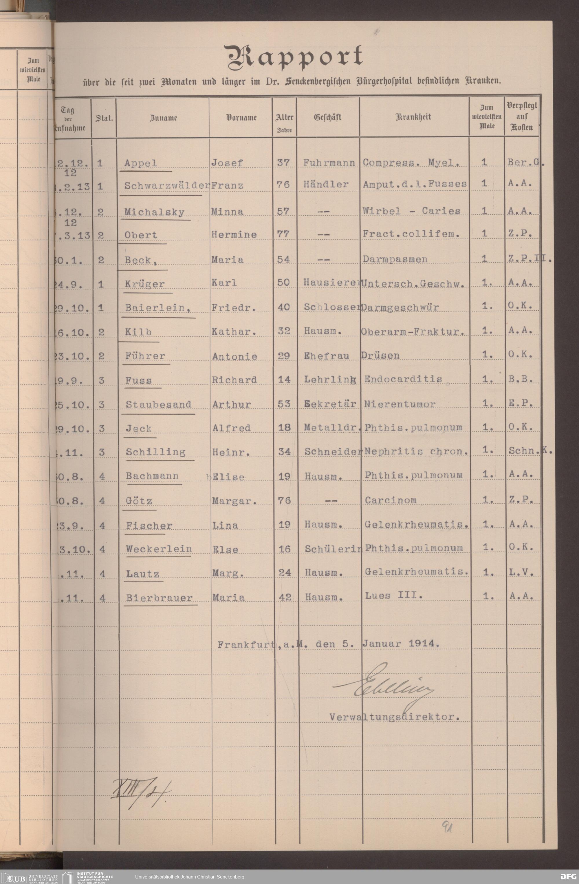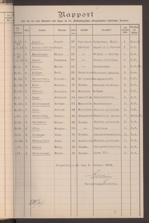V48 Dr. Senckenbergische Stiftung, 620 - Krankenbericht