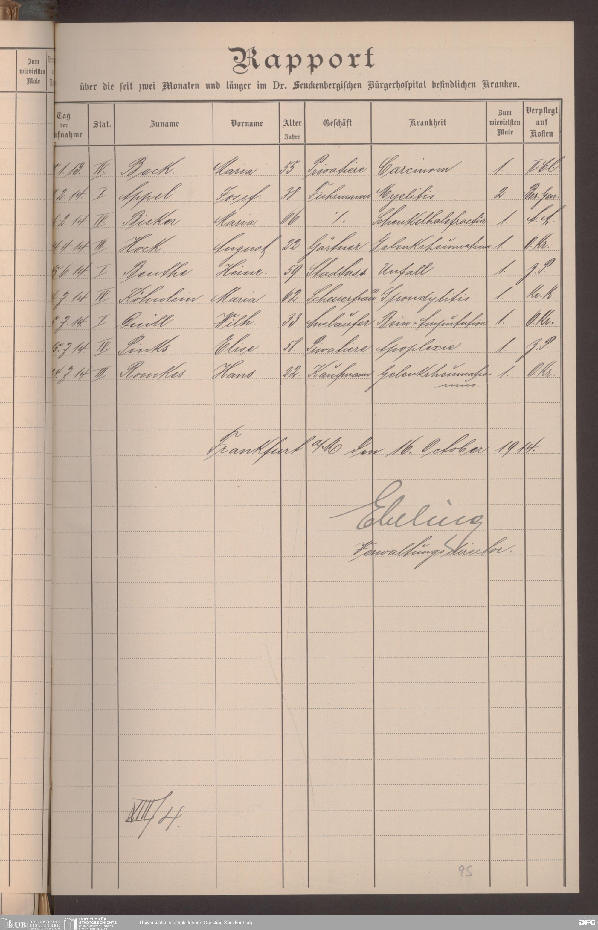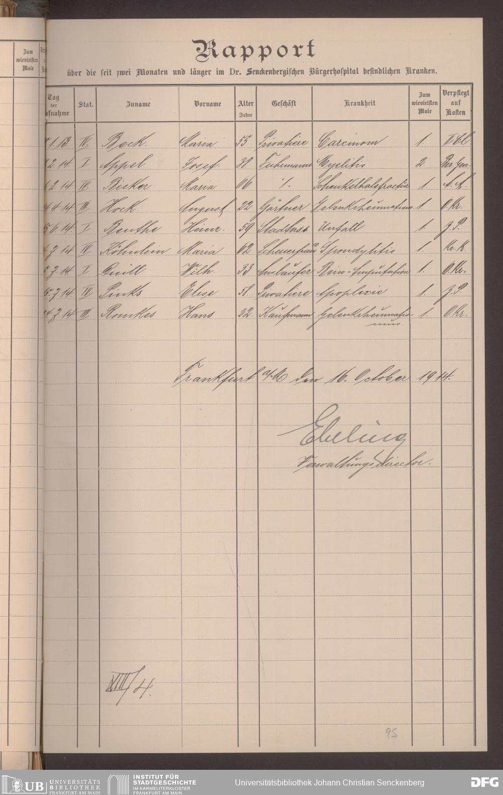 V48 Dr. Senckenbergische Stiftung, 620 - Krankenbericht