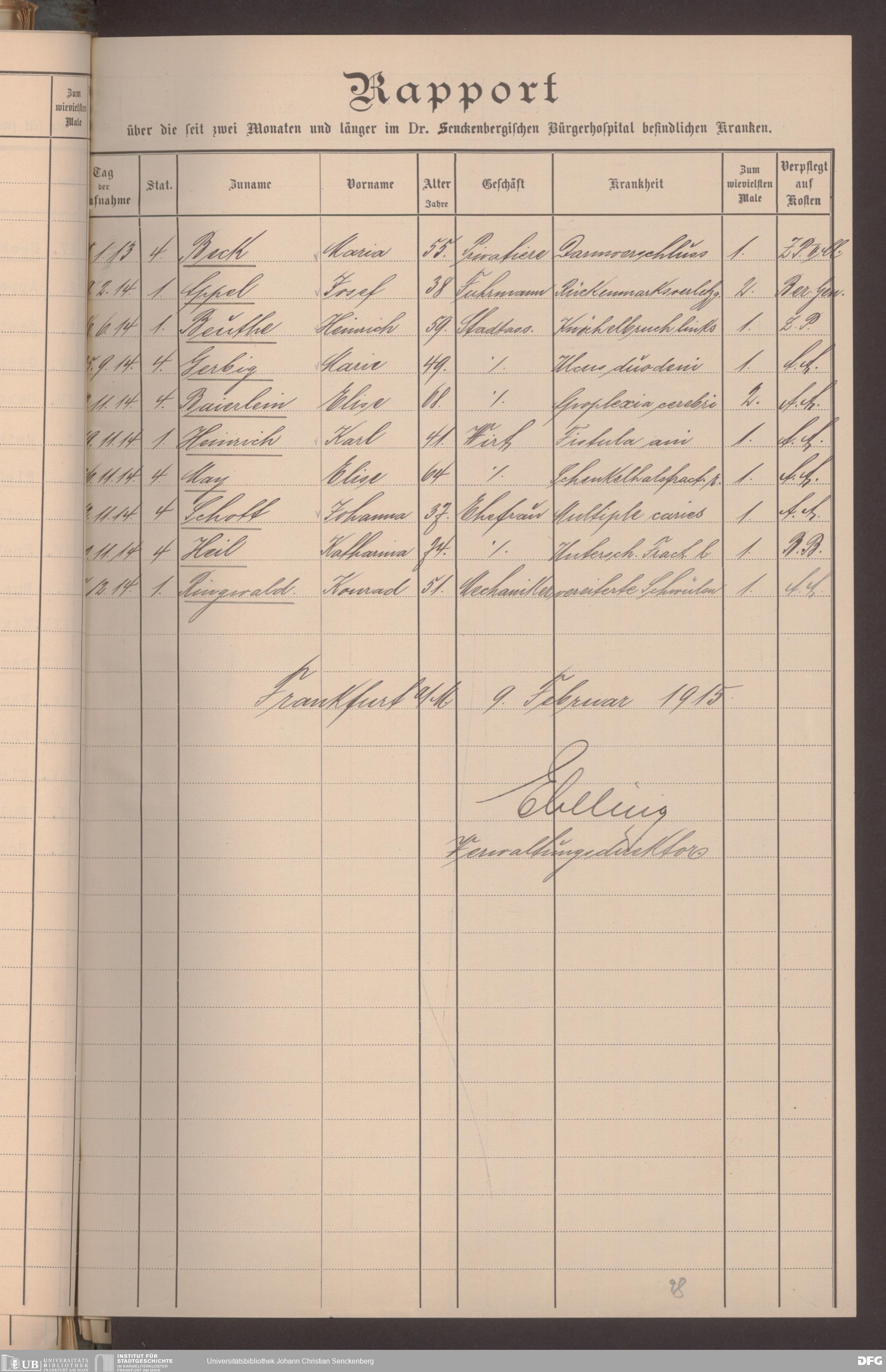 V48 Dr. Senckenbergische Stiftung, 620 - Krankenbericht