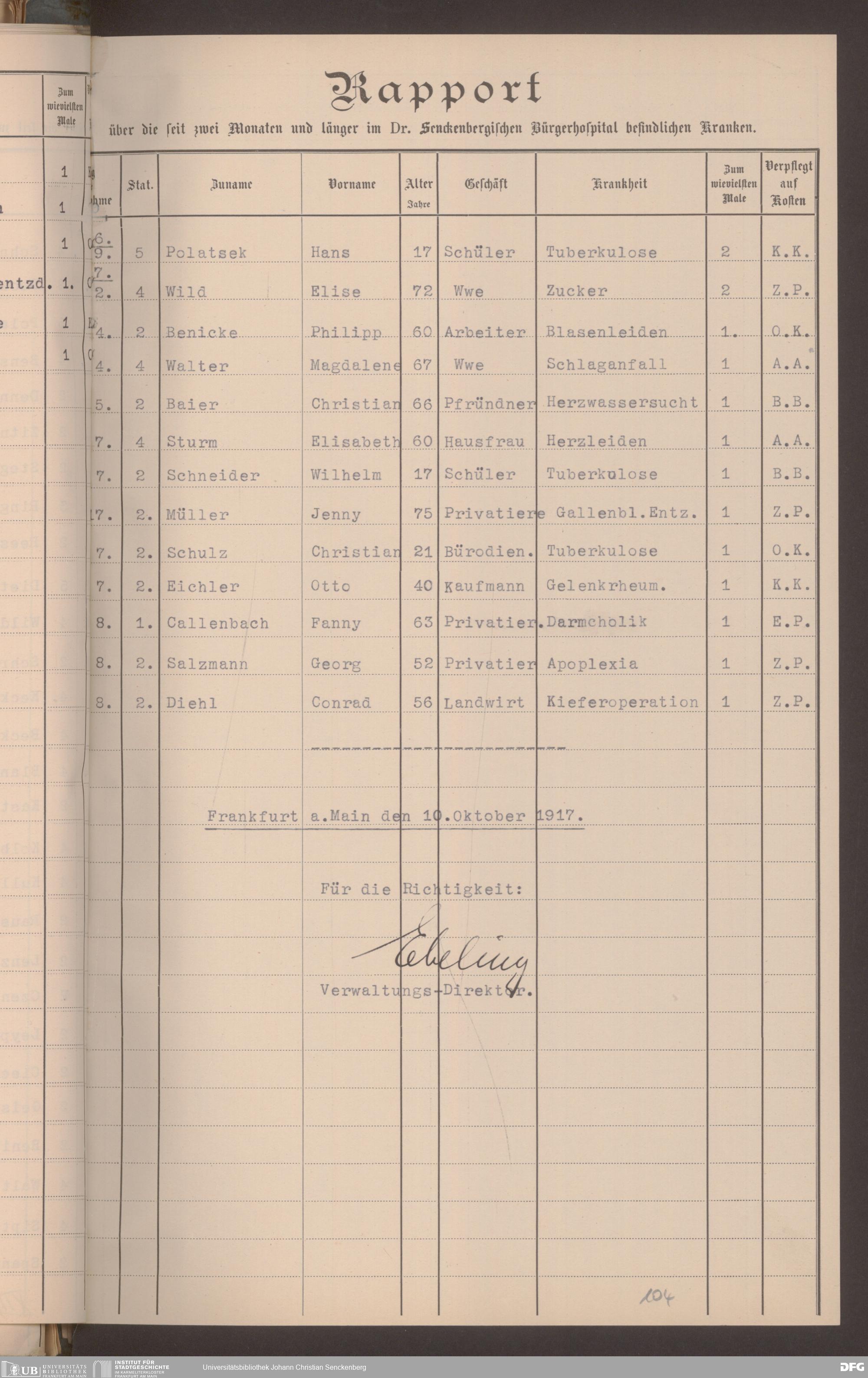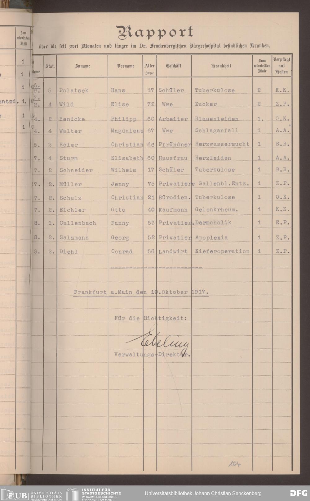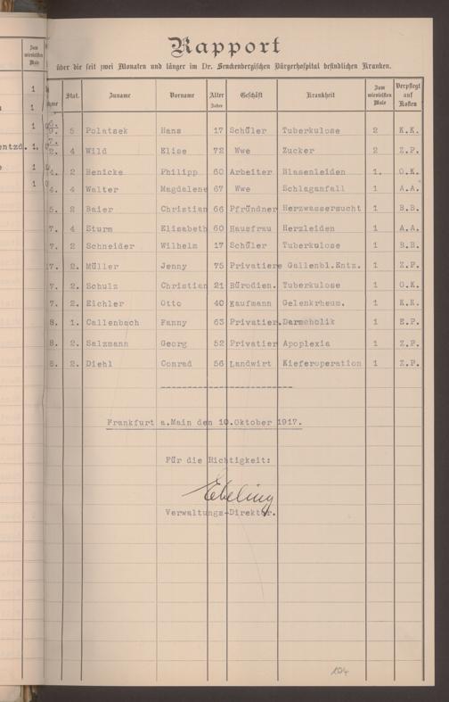 V48 Dr. Senckenbergische Stiftung, 620 - Krankenbericht