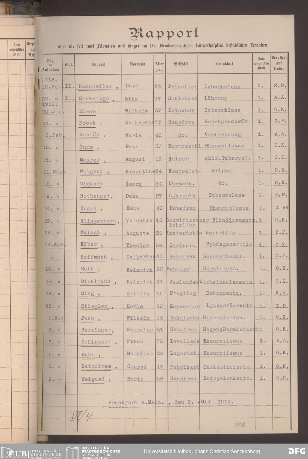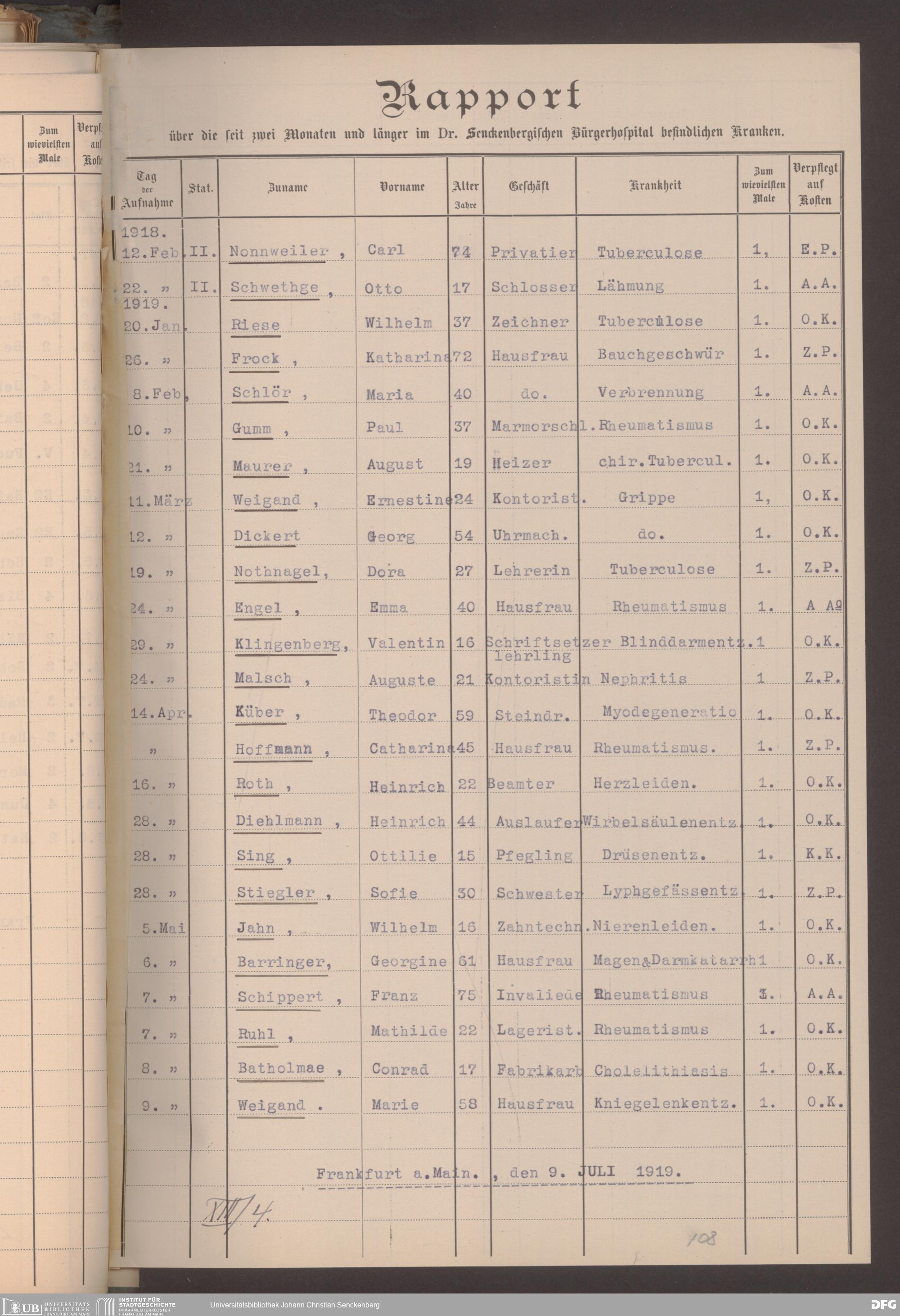 V48 Dr. Senckenbergische Stiftung, 620 - Krankenbericht