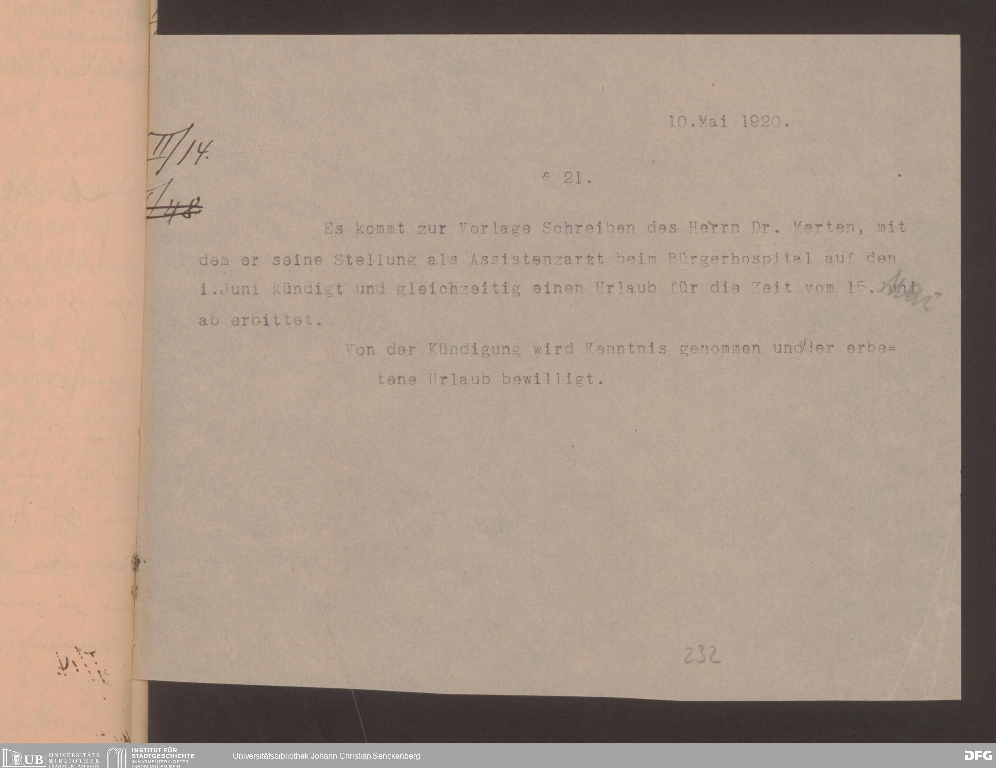 V48 Dr. Senckenbergische Stiftung, 621 - Praktikanten