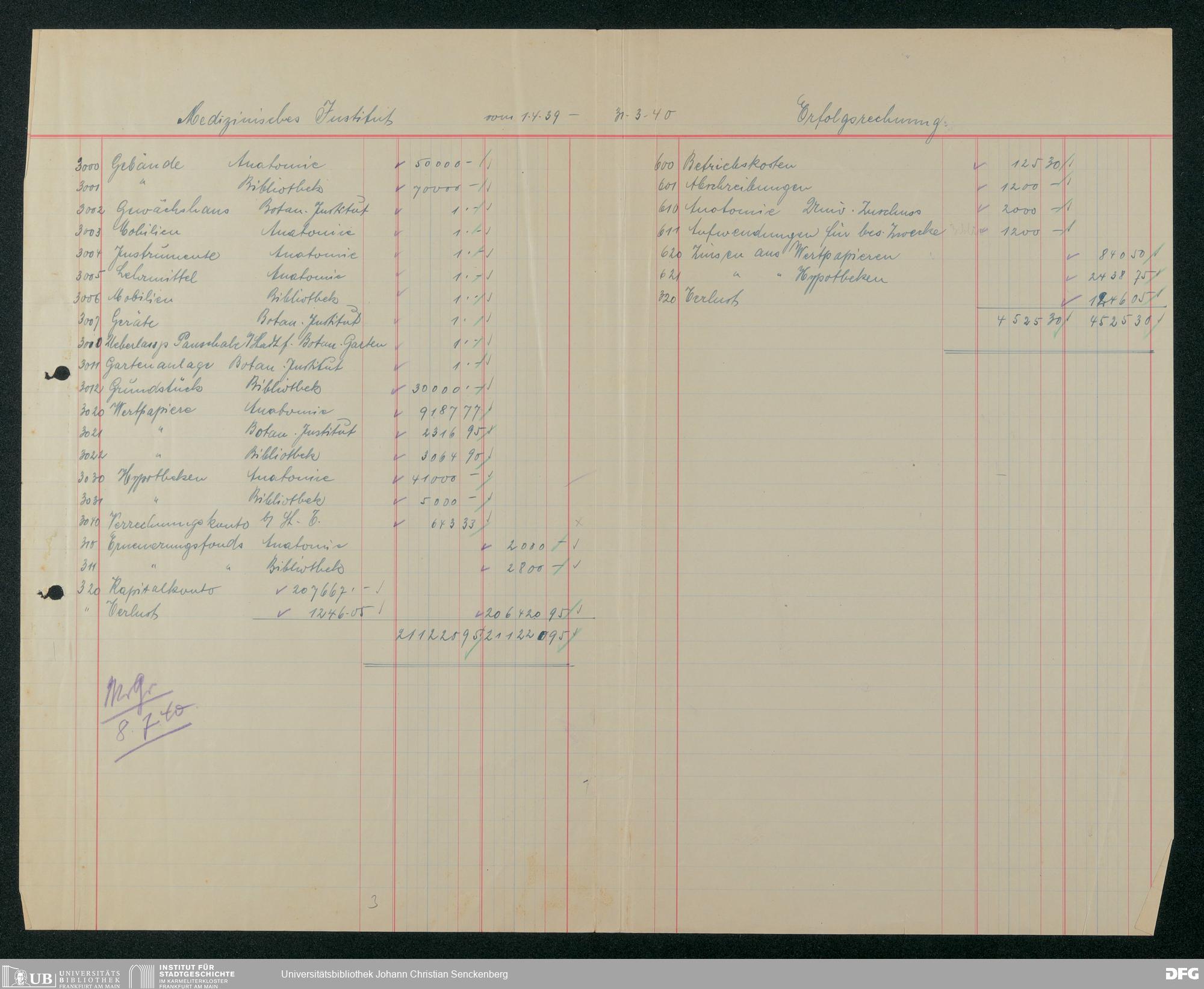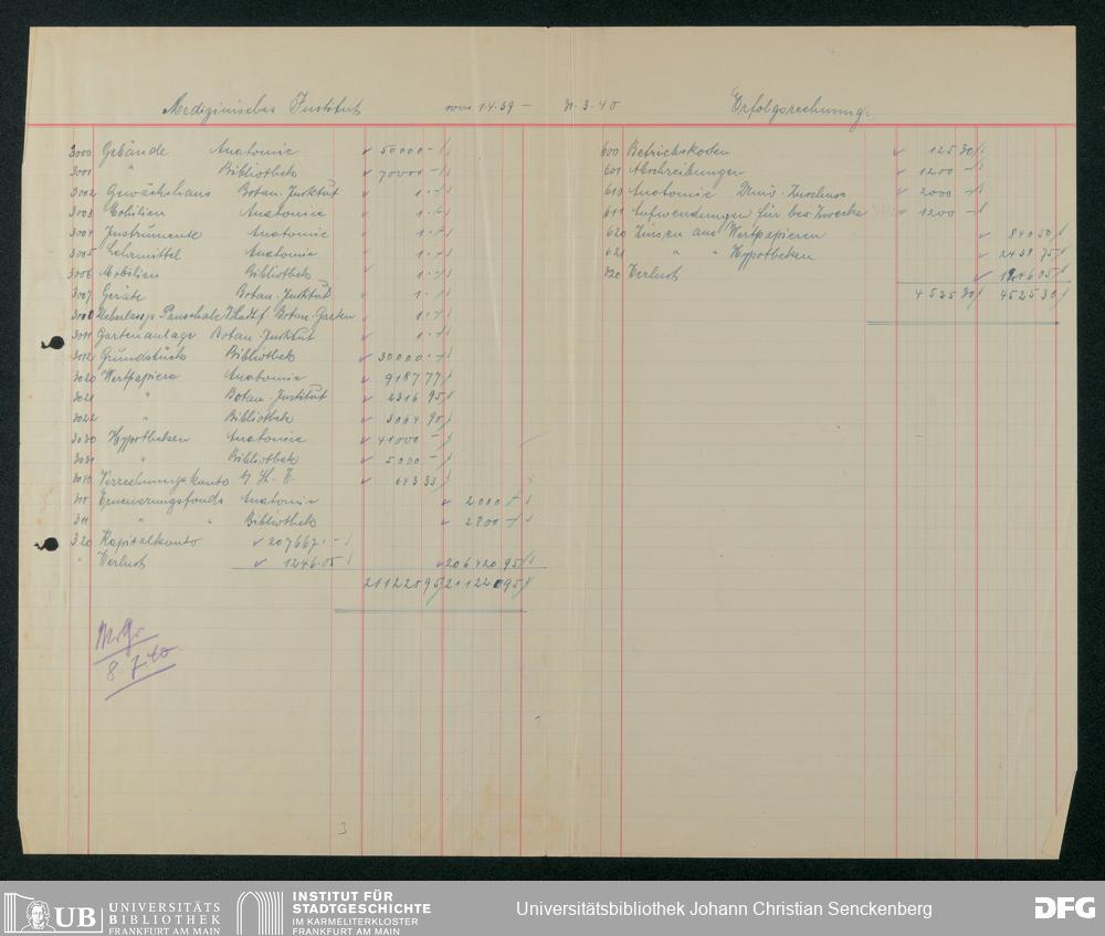 V48 Dr. Senckenbergische Stiftung, 625 - Bilanz der Dr. Senckenbergischen Stiftung 1939/40
