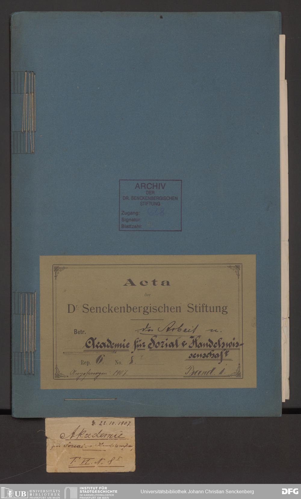 V48 Dr. Senckenbergische Stiftung, 628 - Beziehungen zur Akademie für Sozial- und Handelswissenschaften