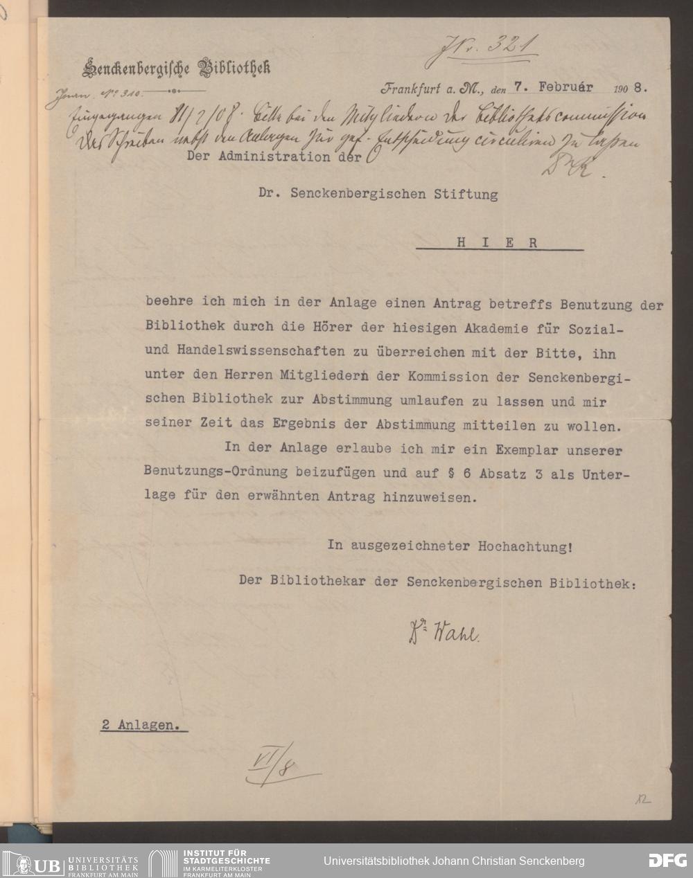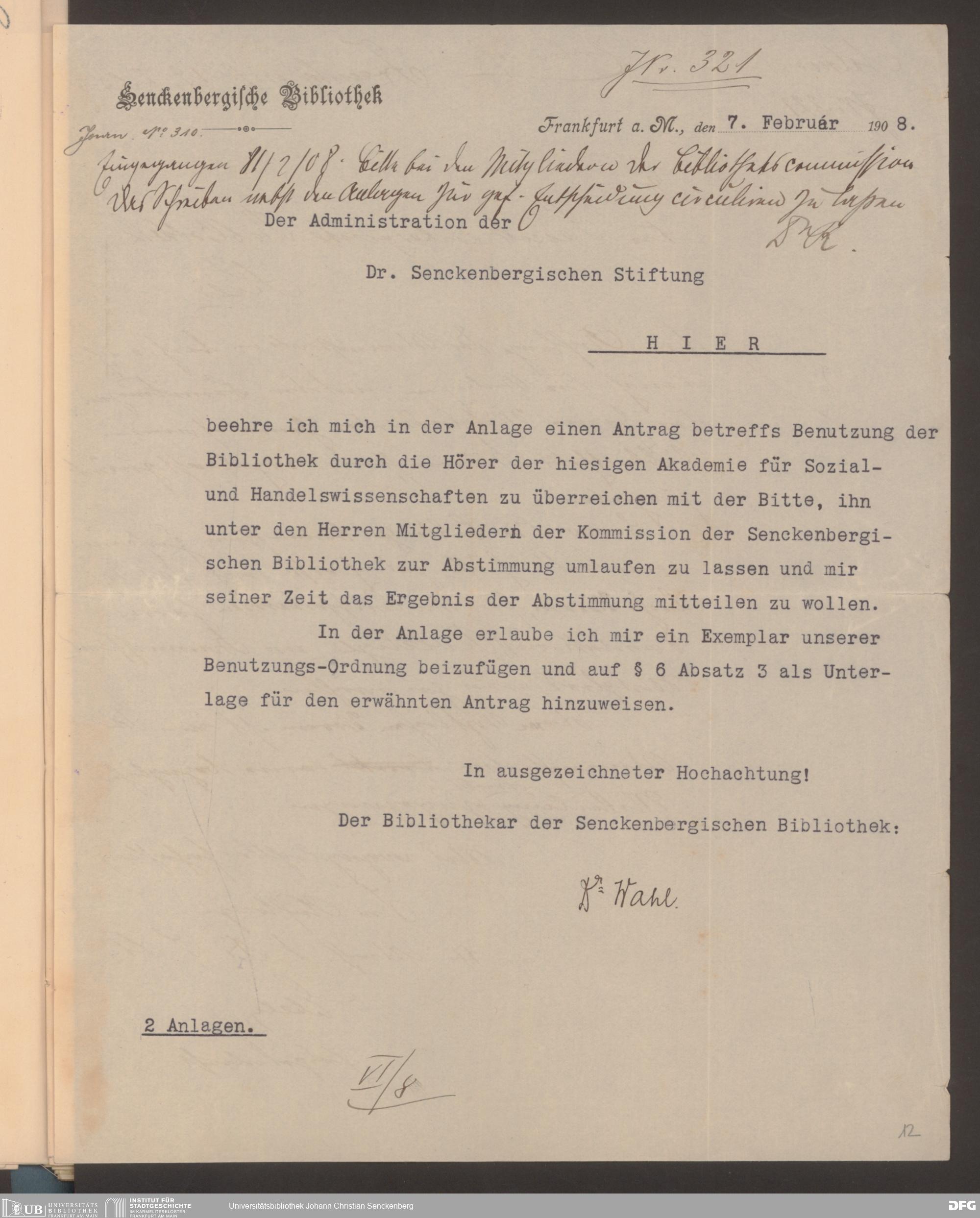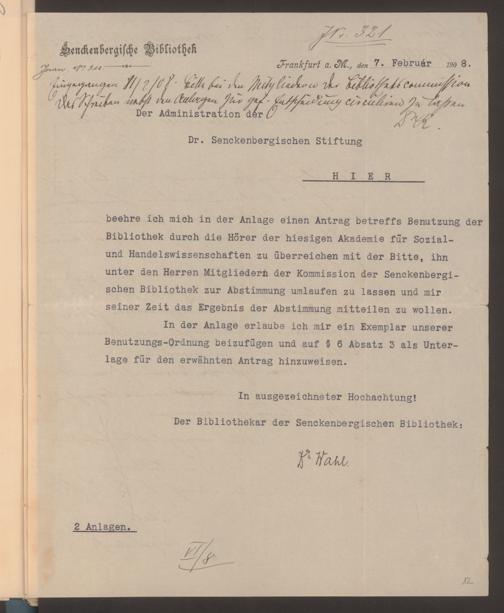 V48 Dr. Senckenbergische Stiftung, 628 - Beziehungen zur Akademie für Sozial- und Handelswissenschaften