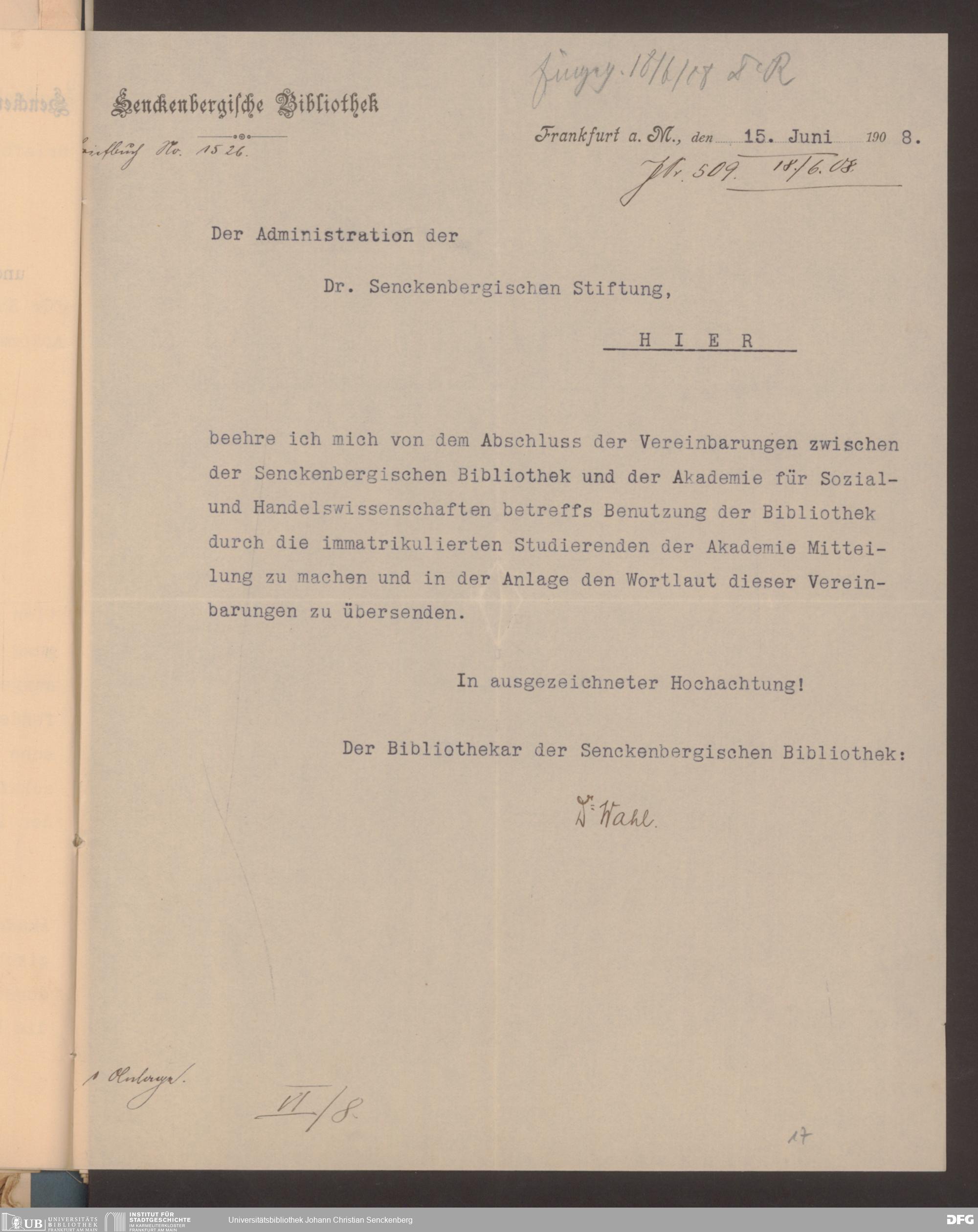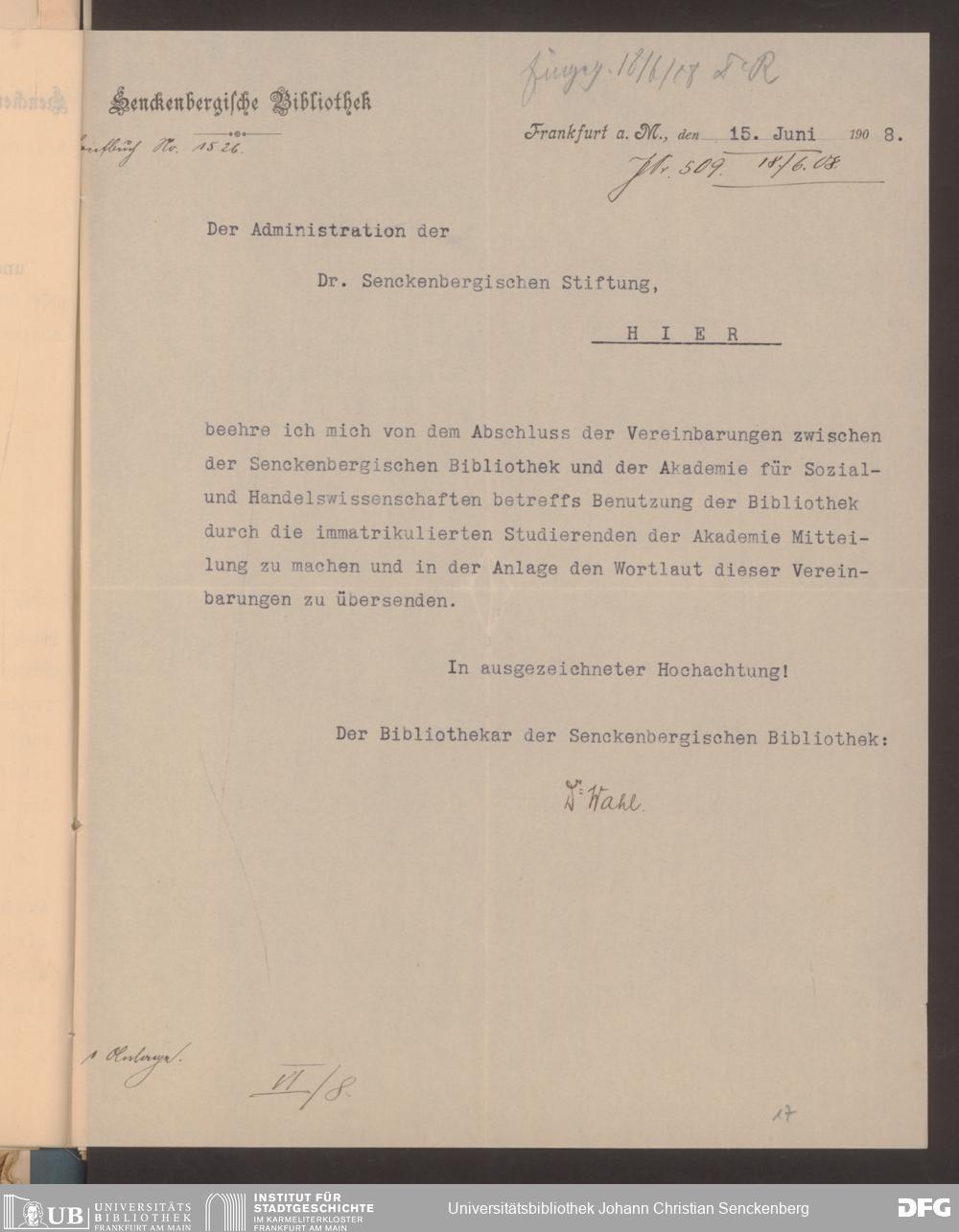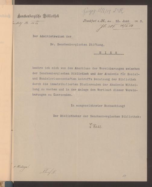 V48 Dr. Senckenbergische Stiftung, 628 - Beziehungen zur Akademie für Sozial- und Handelswissenschaften