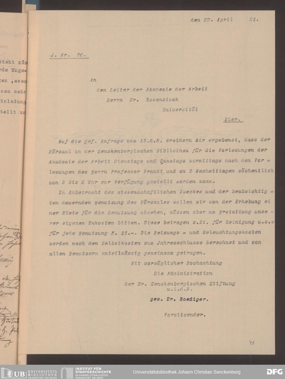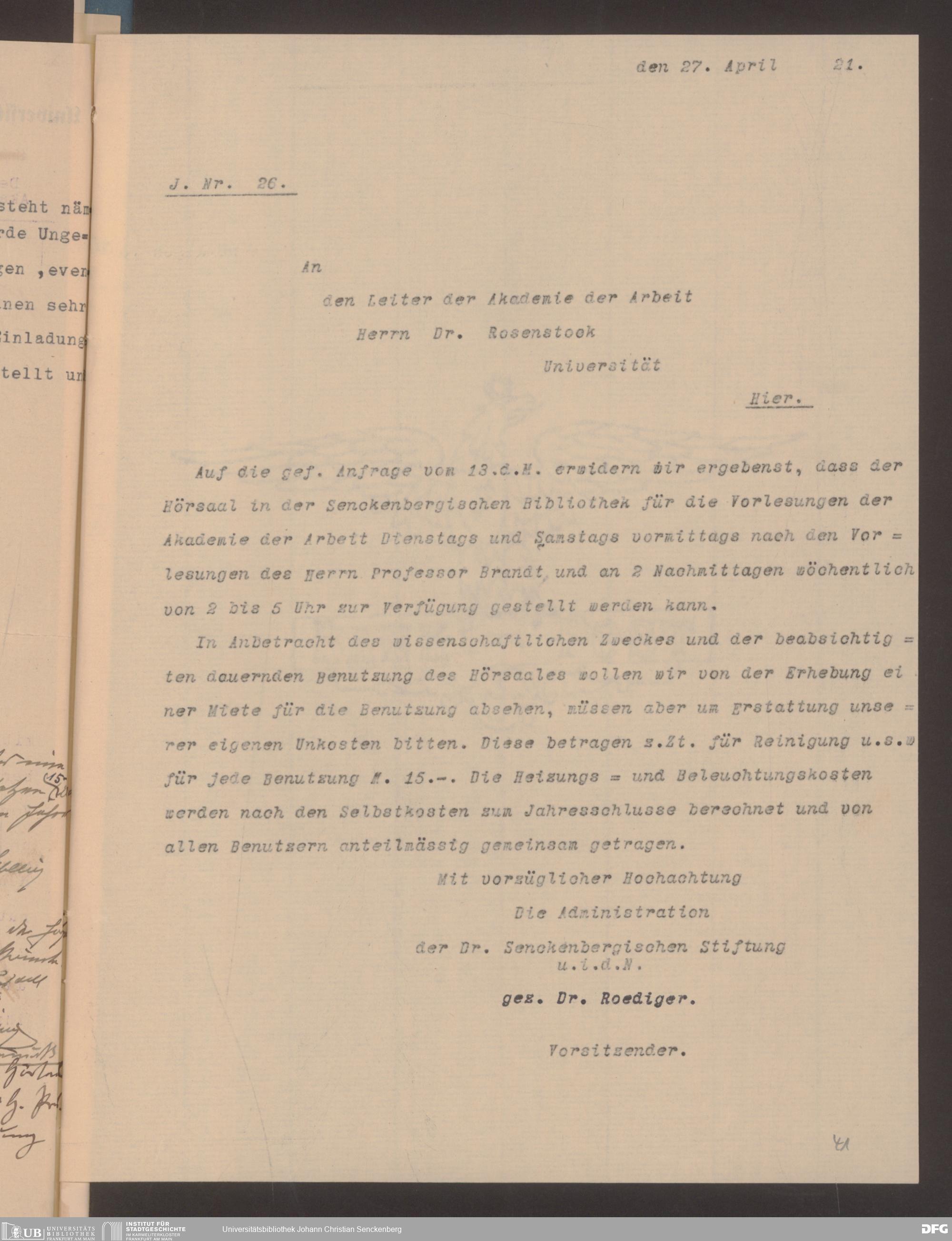 V48 Dr. Senckenbergische Stiftung, 628 - Beziehungen zur Akademie für Sozial- und Handelswissenschaften