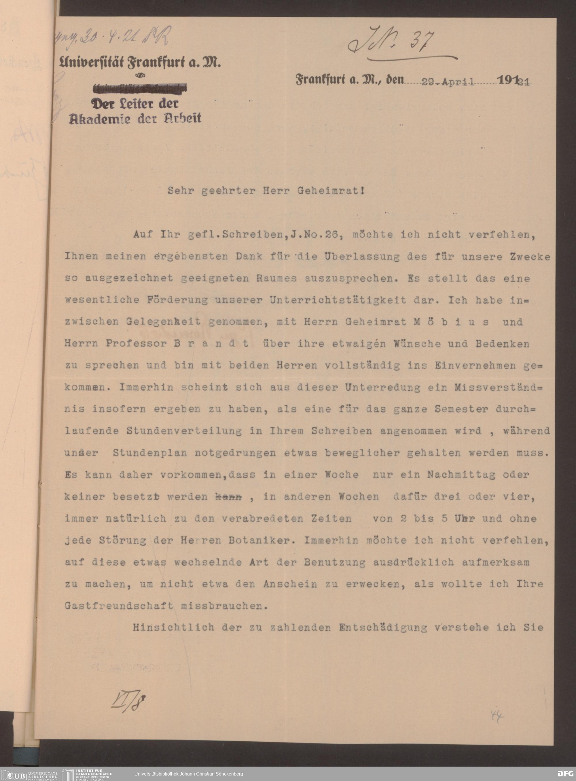 V48 Dr. Senckenbergische Stiftung, 628 - Beziehungen zur Akademie für Sozial- und Handelswissenschaften