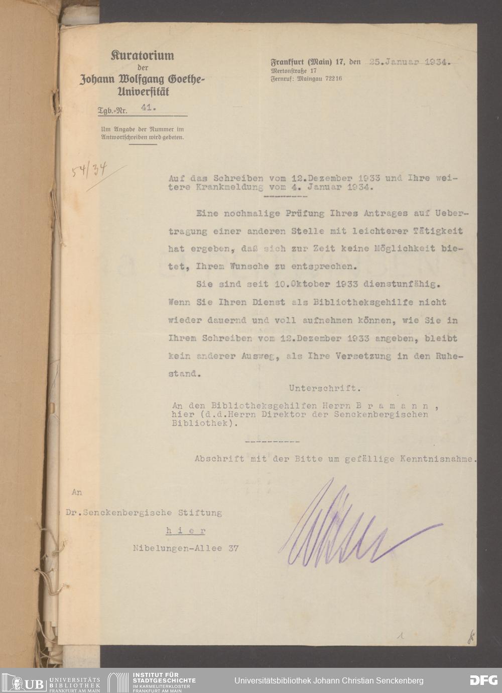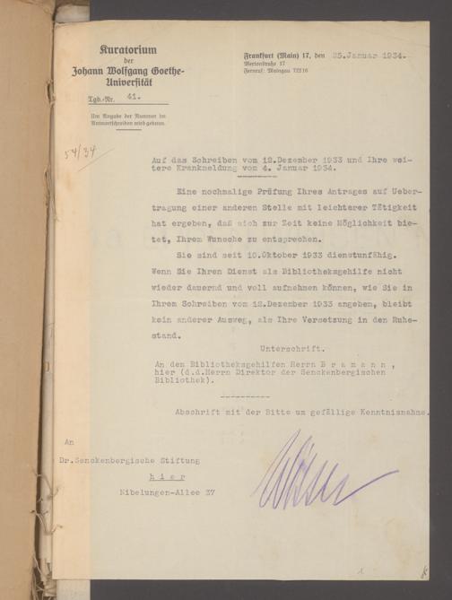 V48 Dr. Senckenbergische Stiftung, 640 - Personalangelegenheiten der Bibliothek