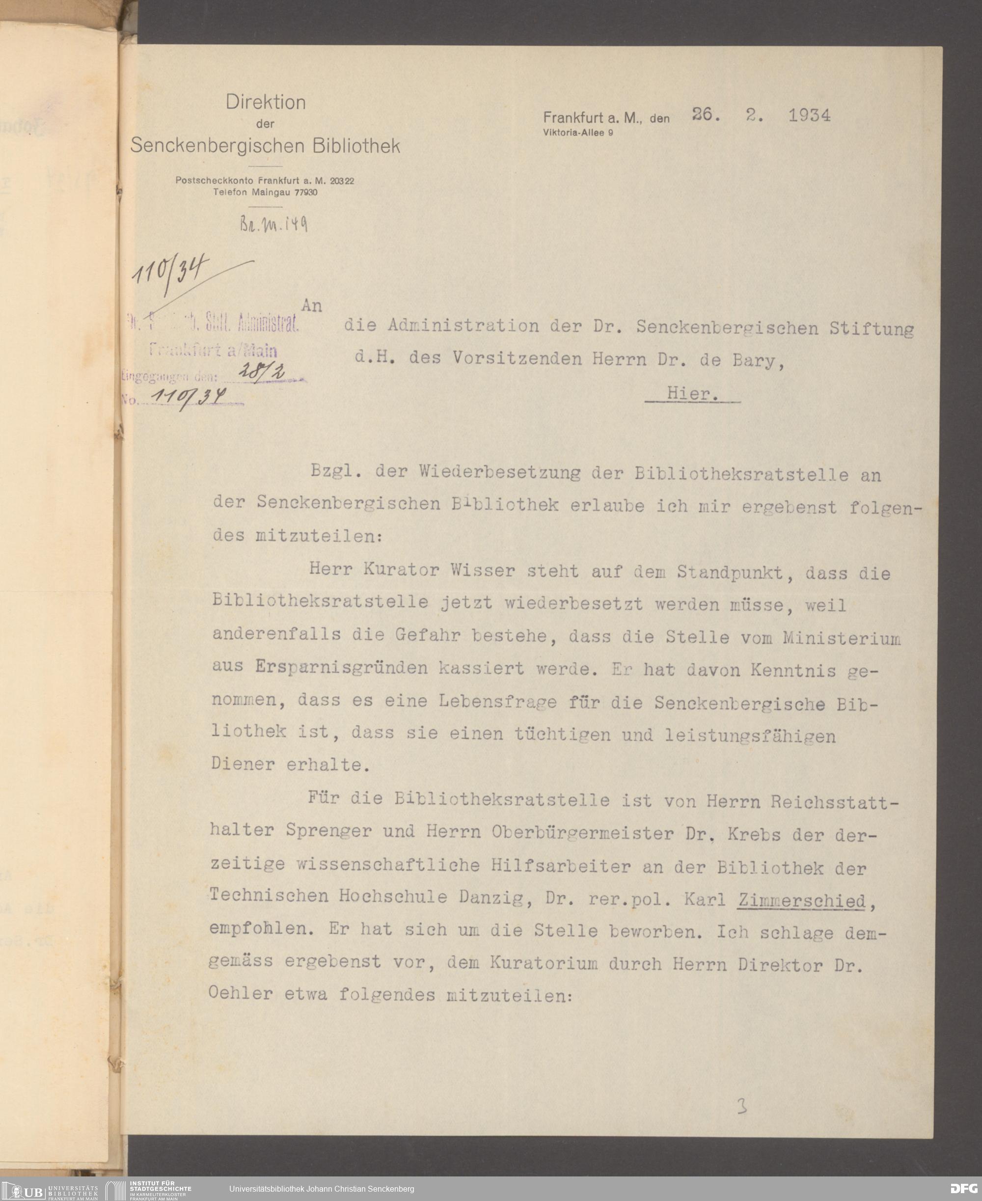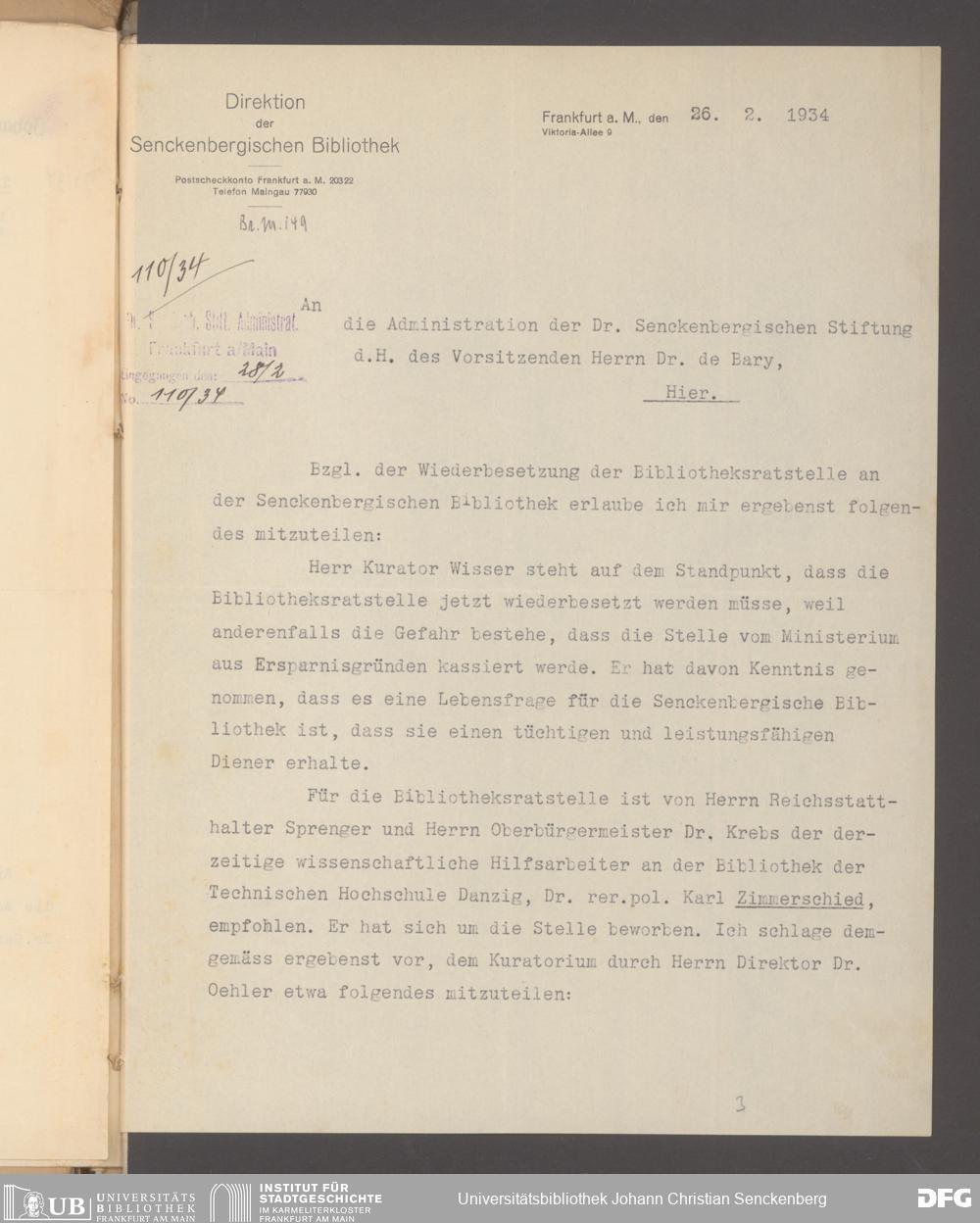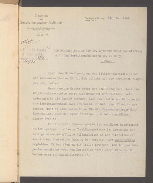 V48 Dr. Senckenbergische Stiftung, 640 - Personalangelegenheiten der Bibliothek