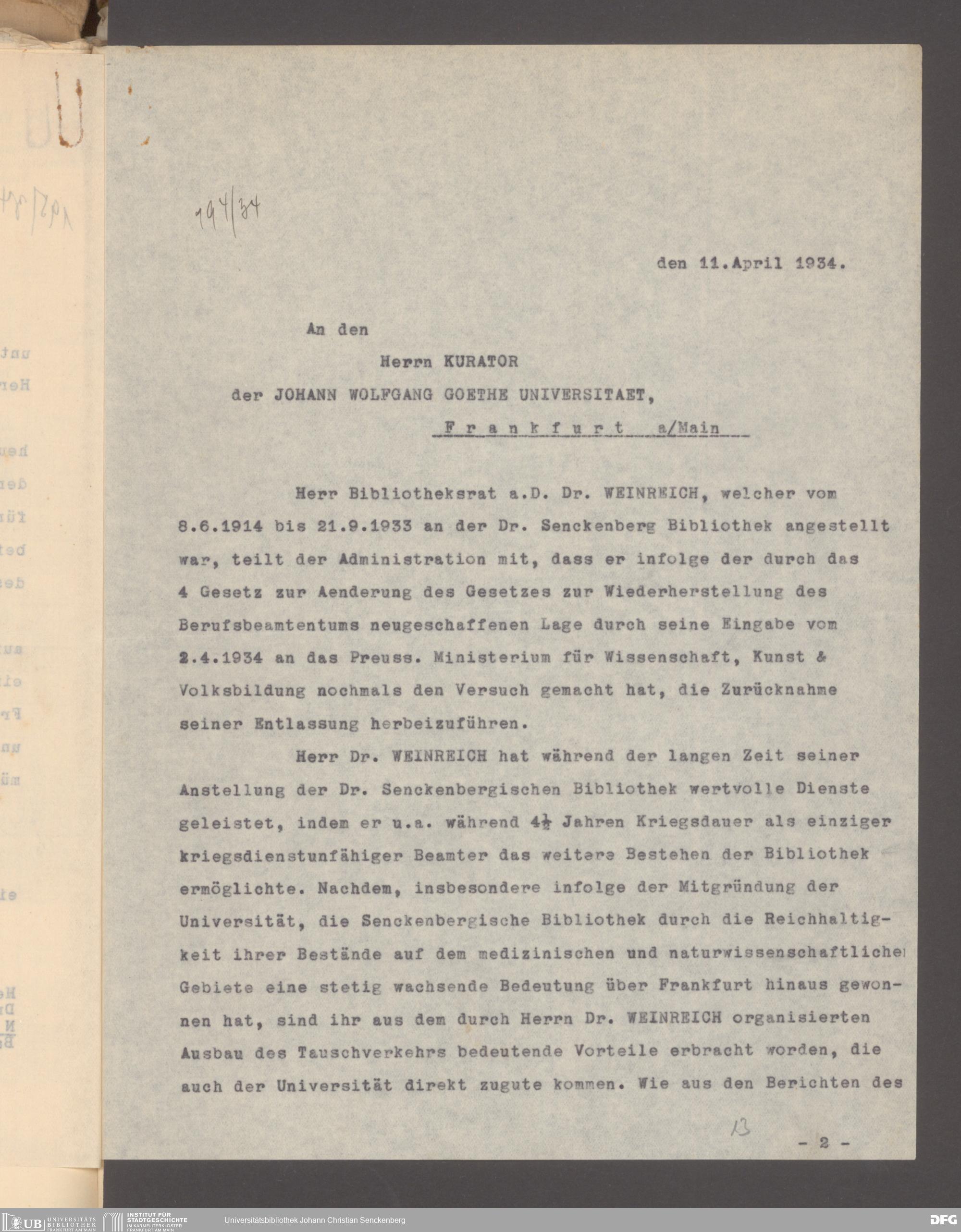 V48 Dr. Senckenbergische Stiftung, 640 - Personalangelegenheiten der Bibliothek