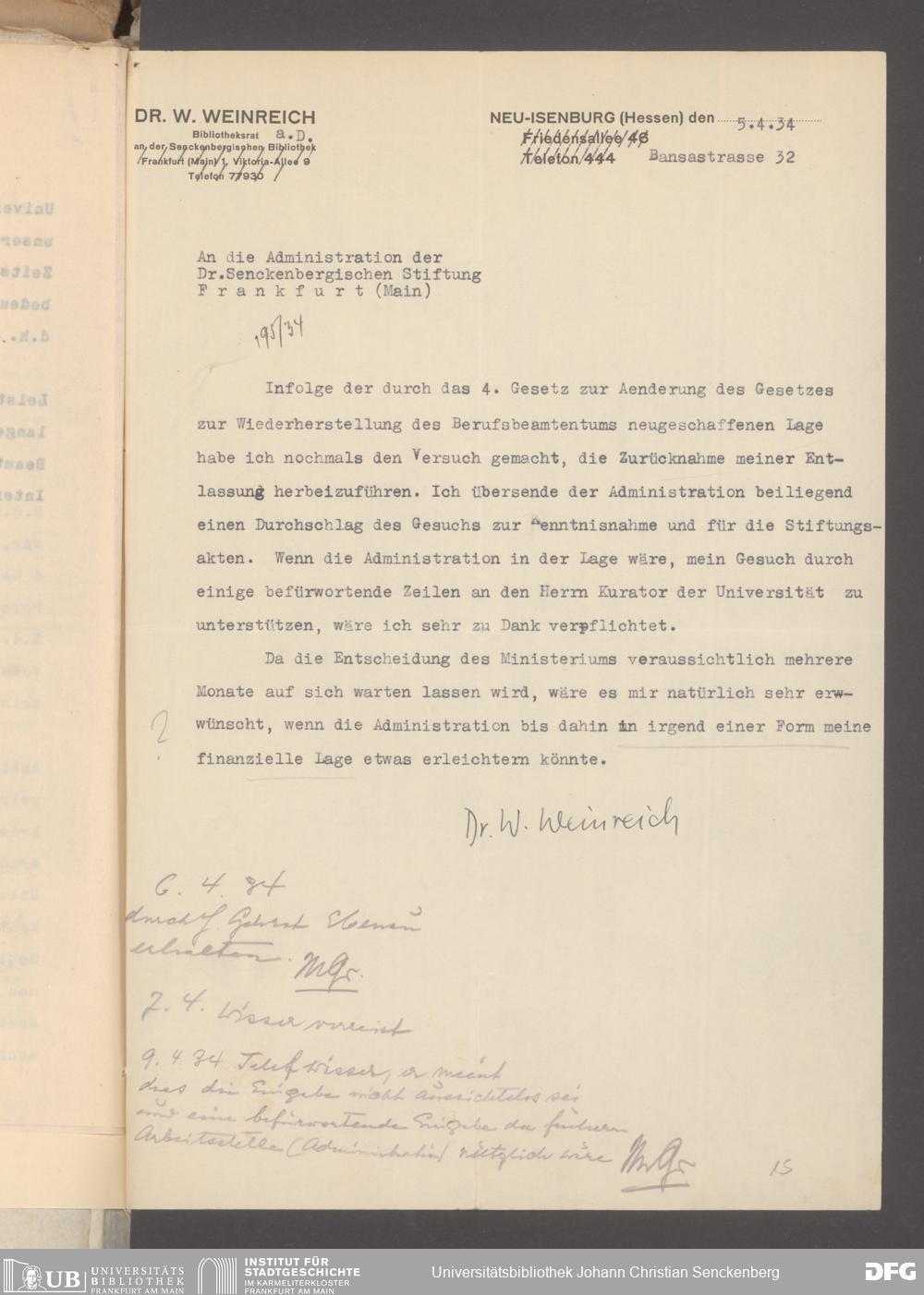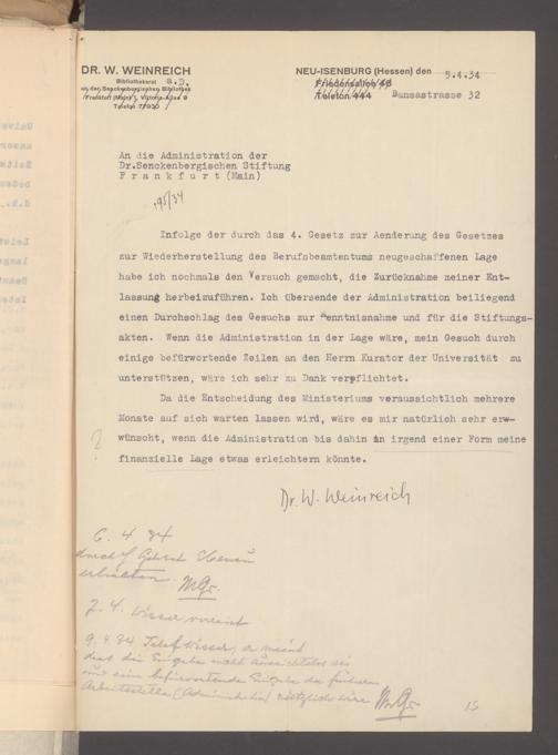V48 Dr. Senckenbergische Stiftung, 640 - Personalangelegenheiten der Bibliothek