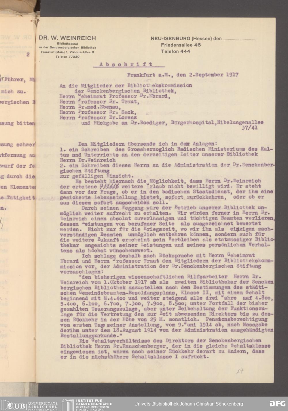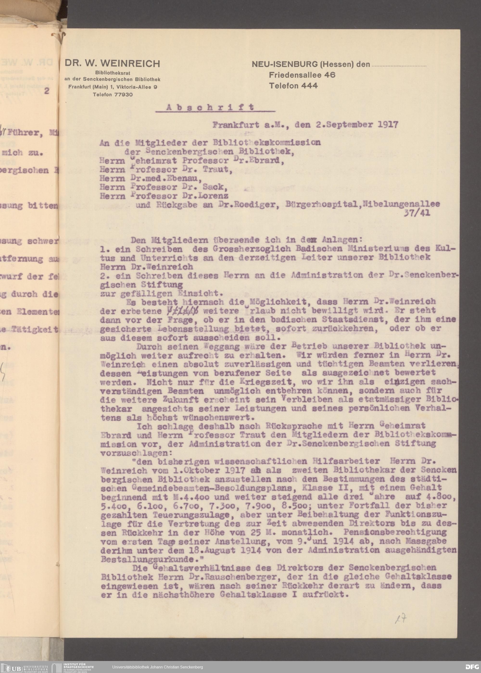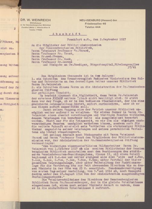 V48 Dr. Senckenbergische Stiftung, 640 - Personalangelegenheiten der Bibliothek
