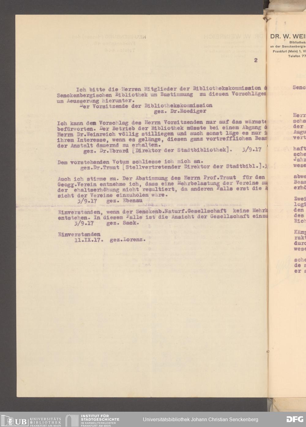 V48 Dr. Senckenbergische Stiftung, 640 - Personalangelegenheiten der Bibliothek