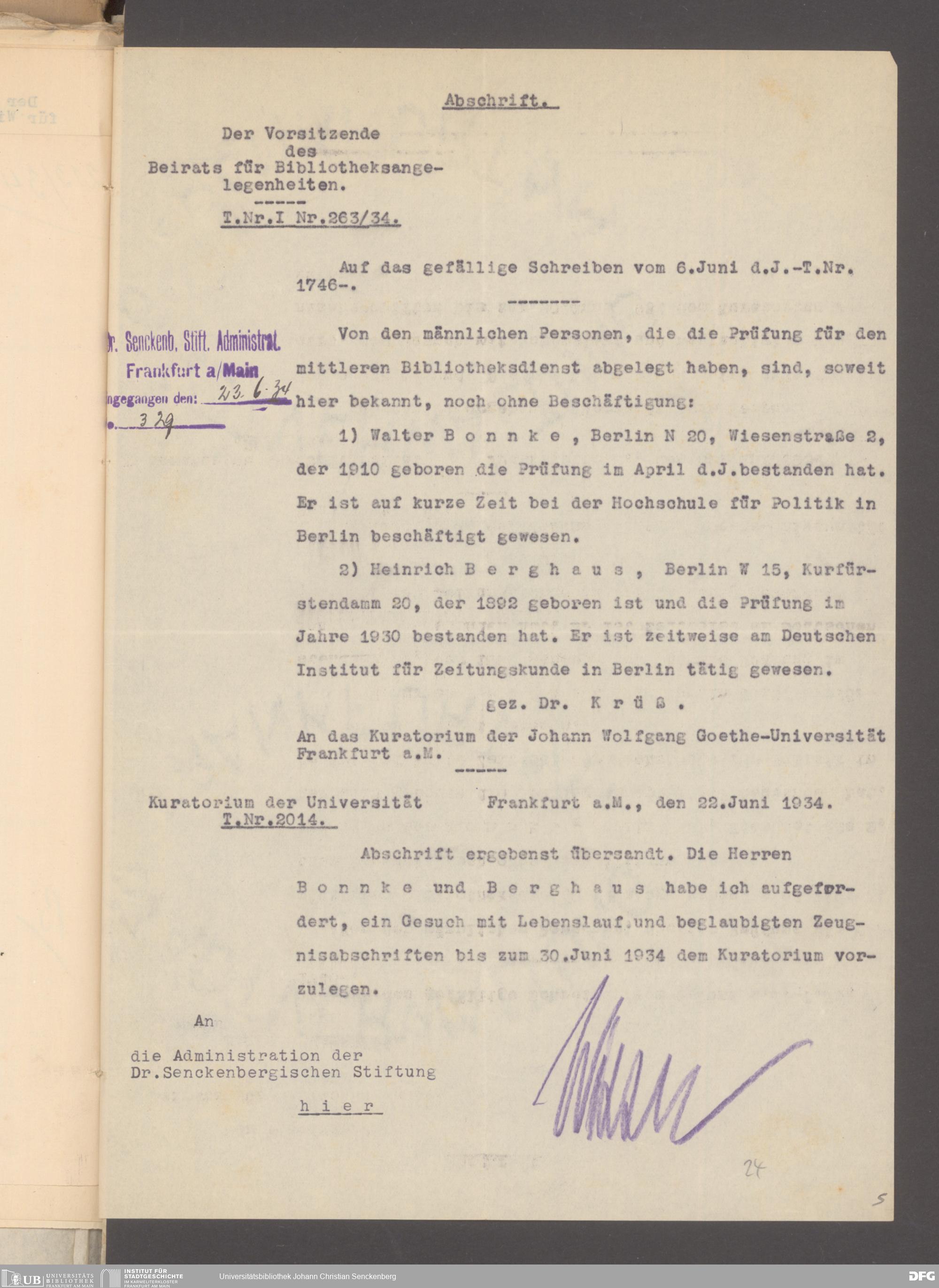 V48 Dr. Senckenbergische Stiftung, 640 - Personalangelegenheiten der Bibliothek