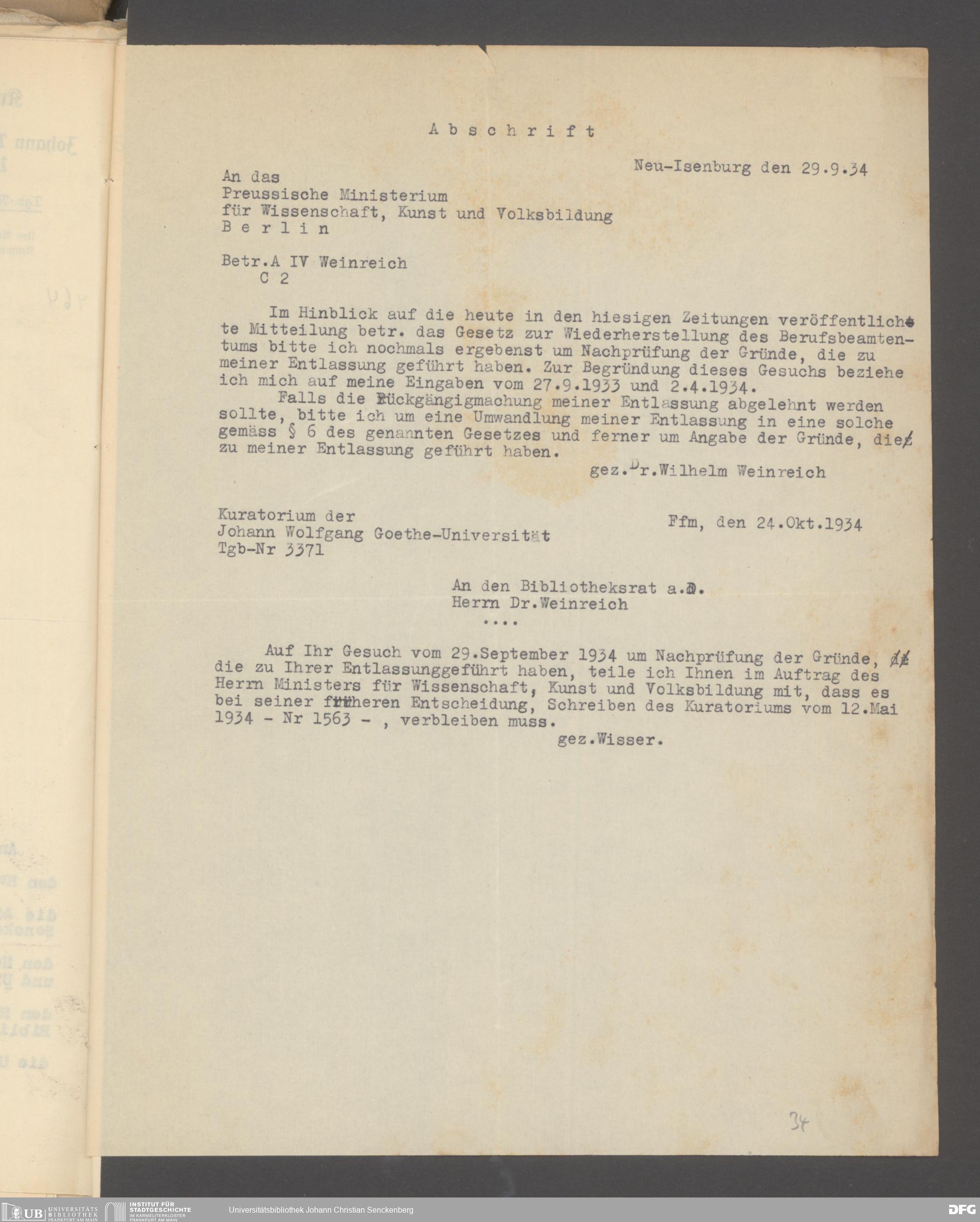 V48 Dr. Senckenbergische Stiftung, 640 - Personalangelegenheiten der Bibliothek