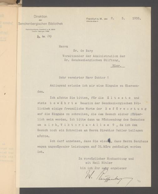 V48 Dr. Senckenbergische Stiftung, 640 - Personalangelegenheiten der Bibliothek