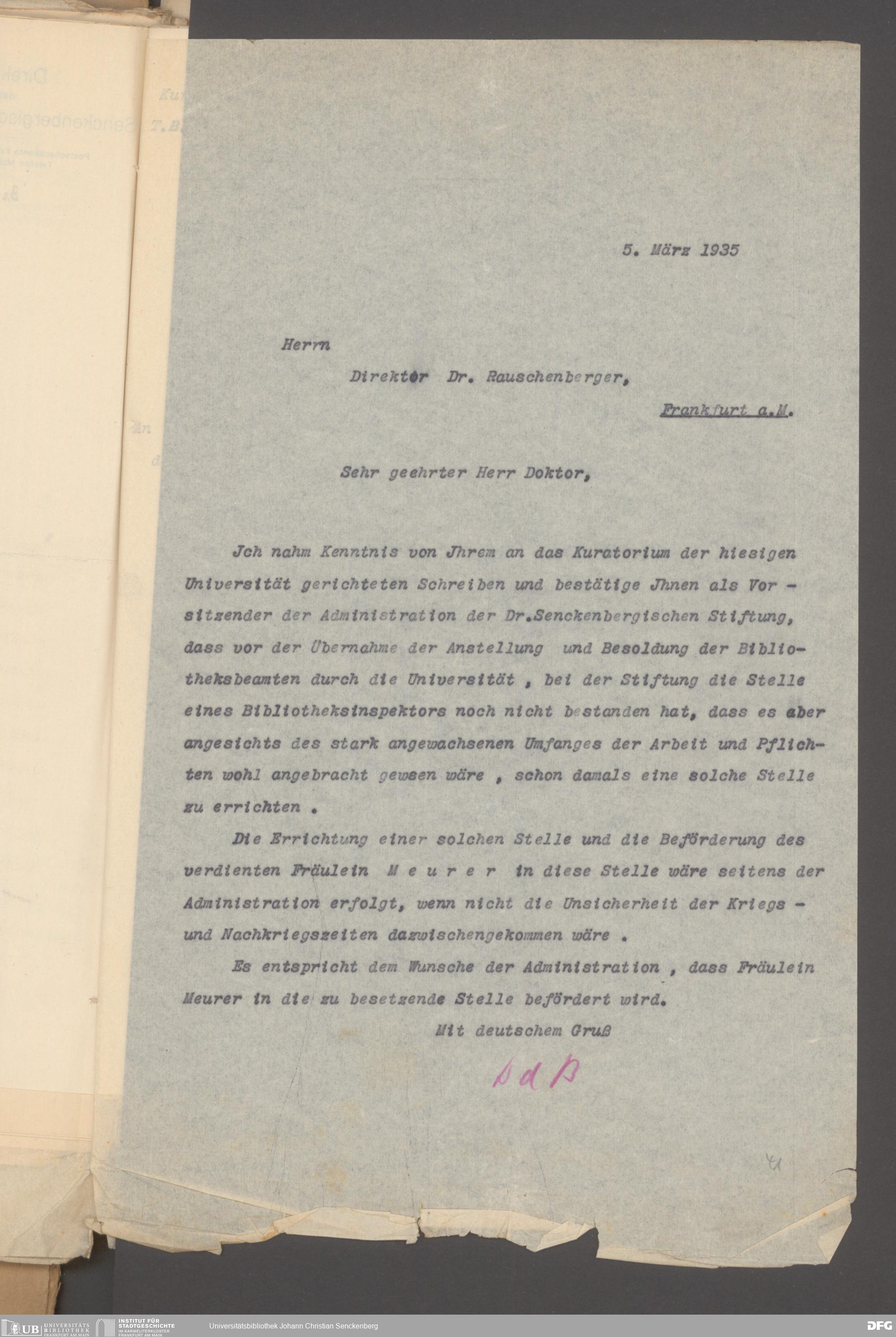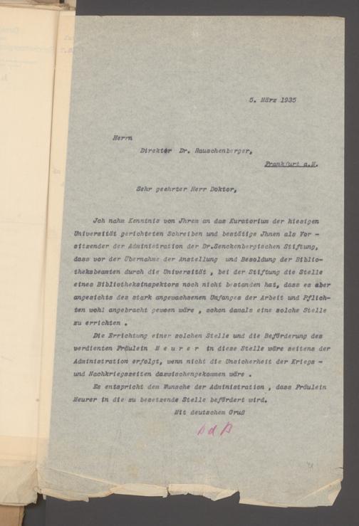 V48 Dr. Senckenbergische Stiftung, 640 - Personalangelegenheiten der Bibliothek