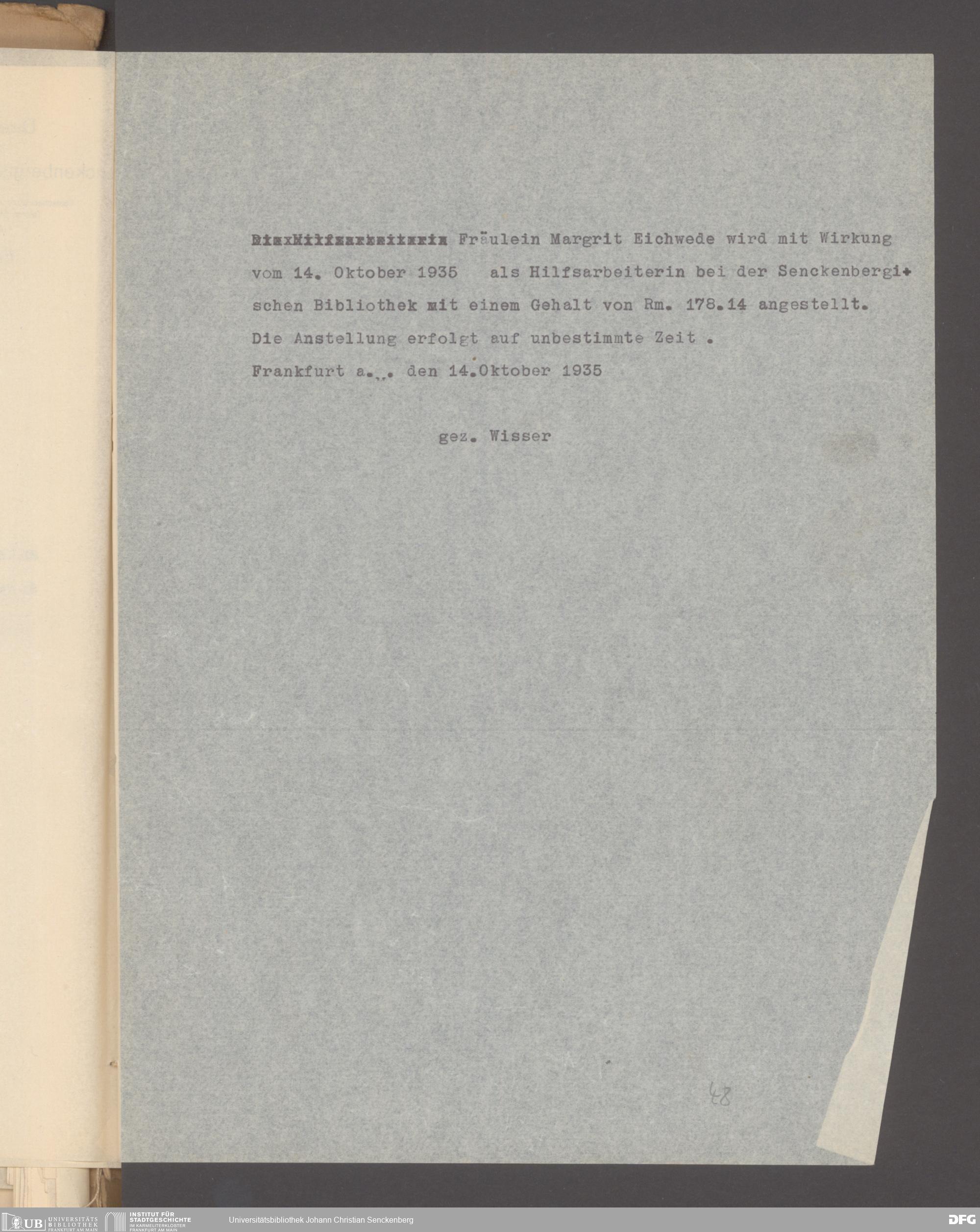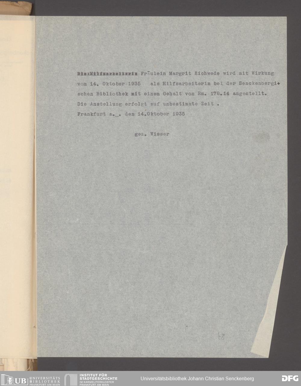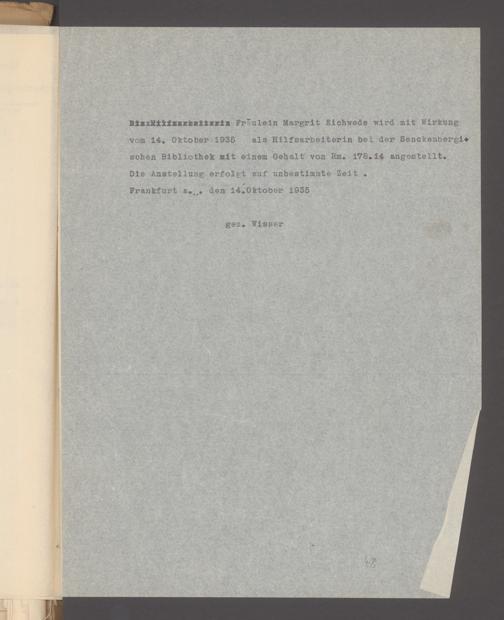 V48 Dr. Senckenbergische Stiftung, 640 - Personalangelegenheiten der Bibliothek