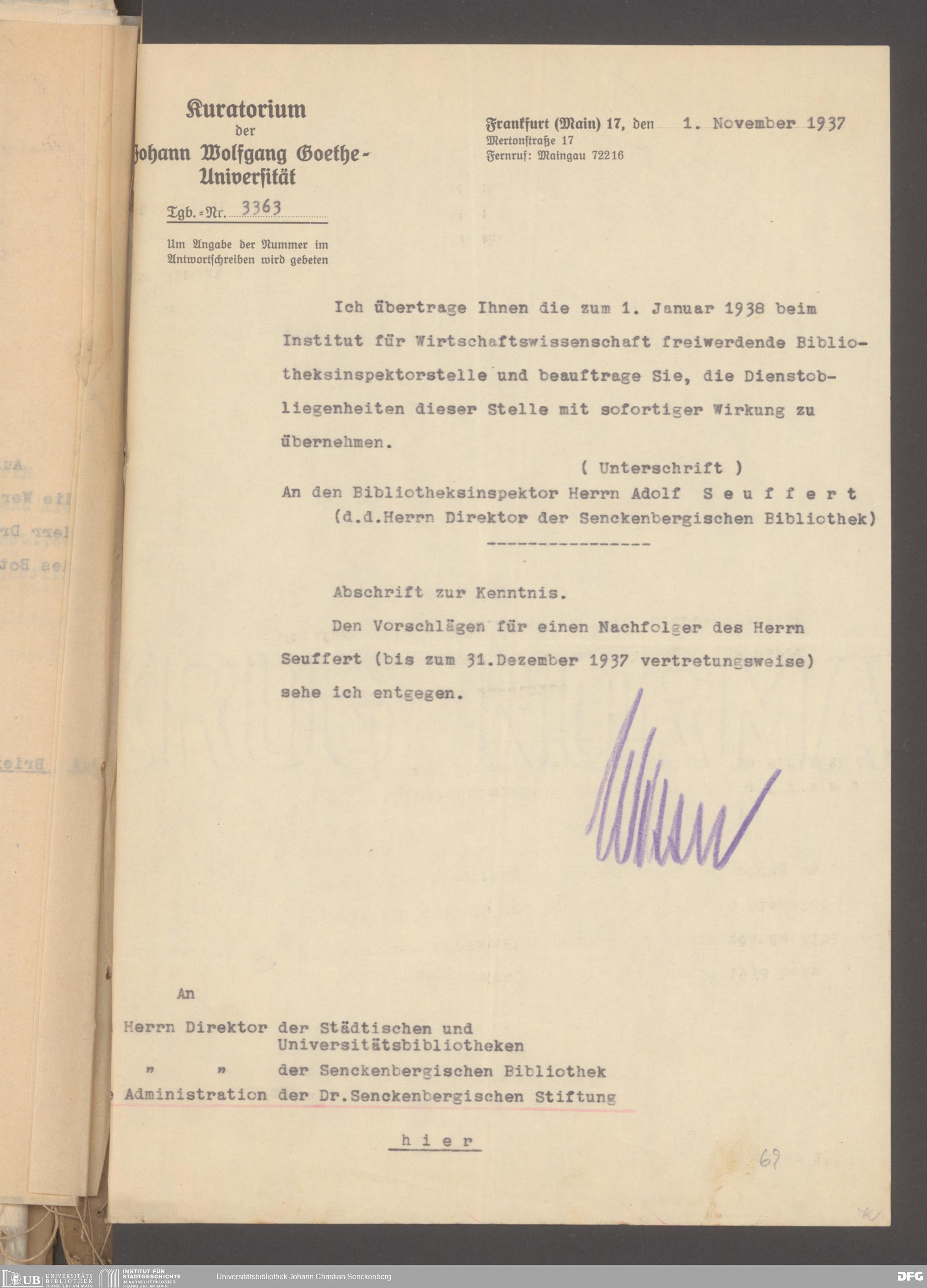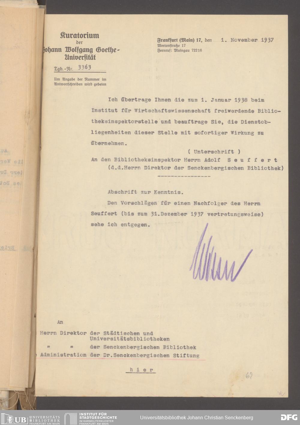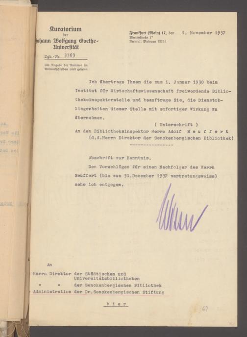 V48 Dr. Senckenbergische Stiftung, 640 - Personalangelegenheiten der Bibliothek