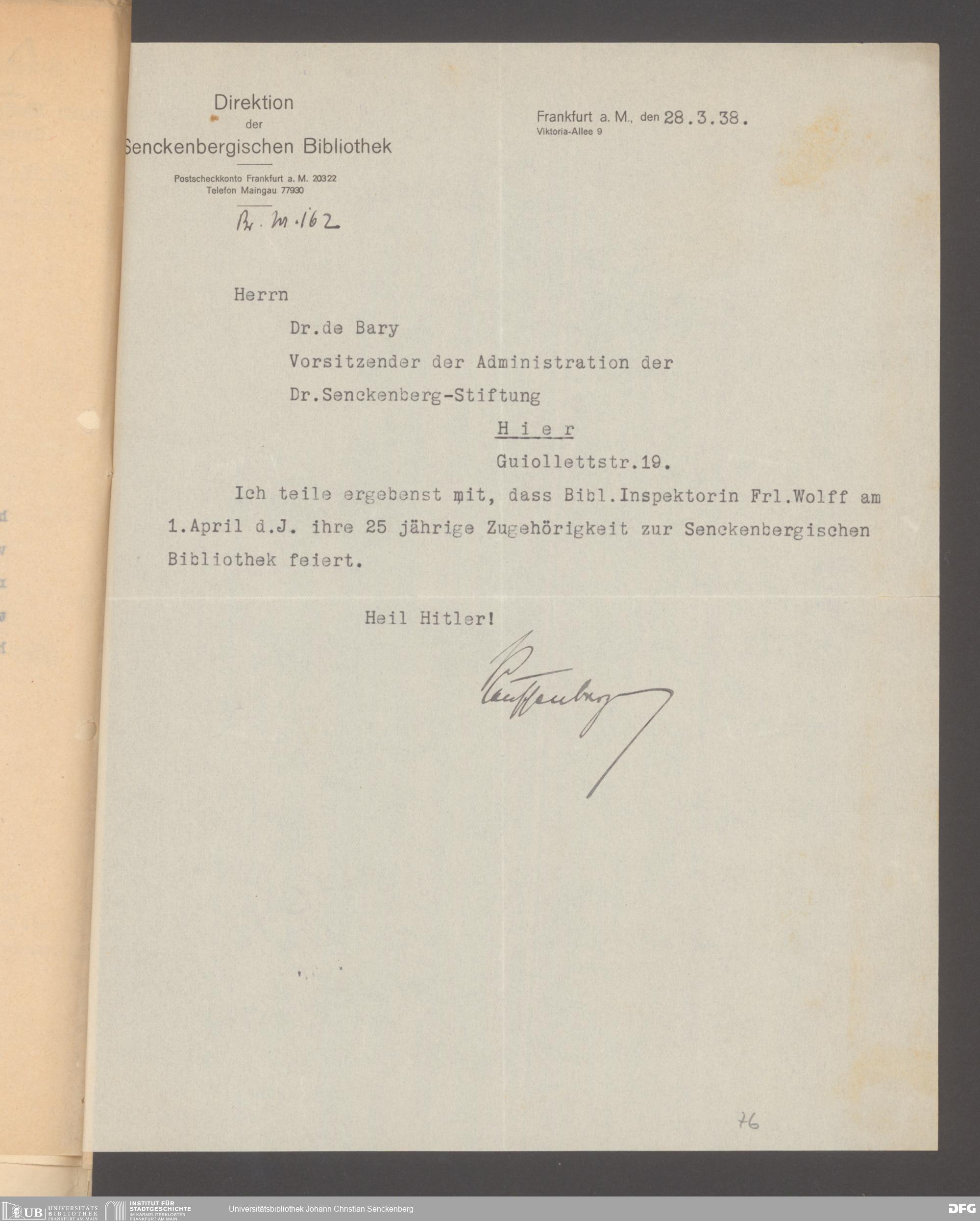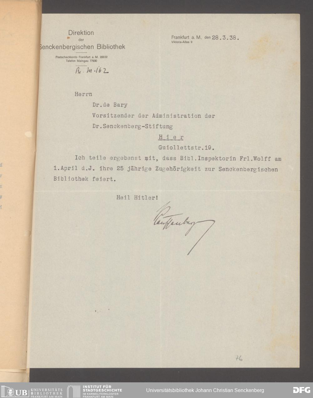 V48 Dr. Senckenbergische Stiftung, 640 - Personalangelegenheiten der Bibliothek