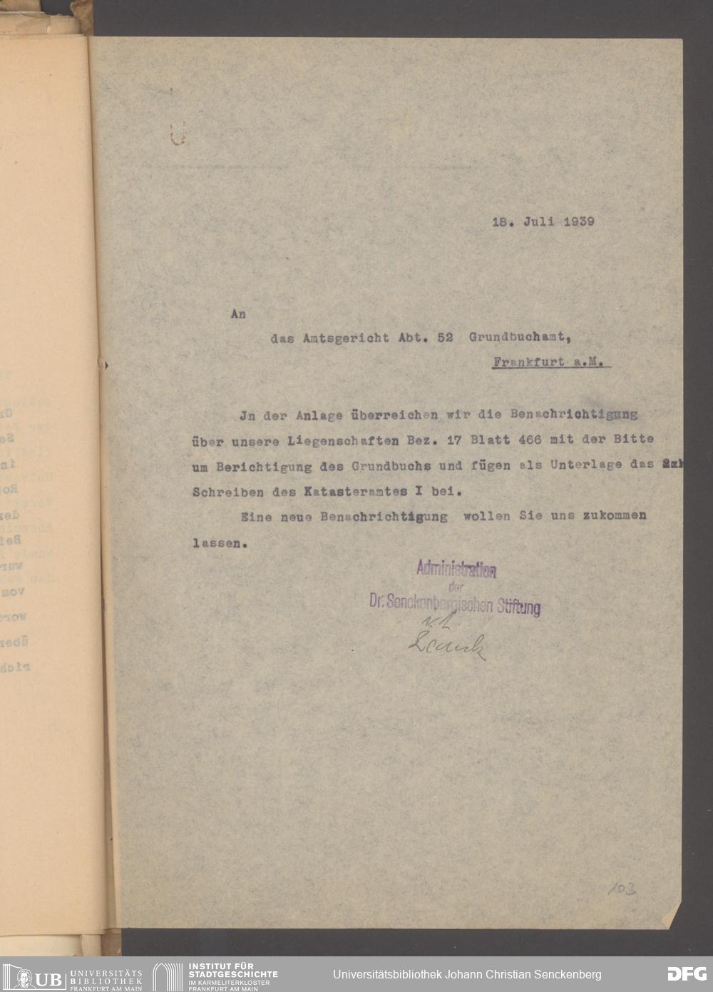 V48 Dr. Senckenbergische Stiftung, 640 - Personalangelegenheiten der Bibliothek